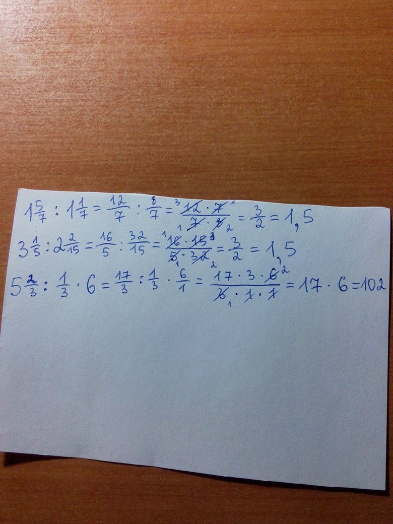 Три целых одна пятая поделить на две целых две пятнадцатых.