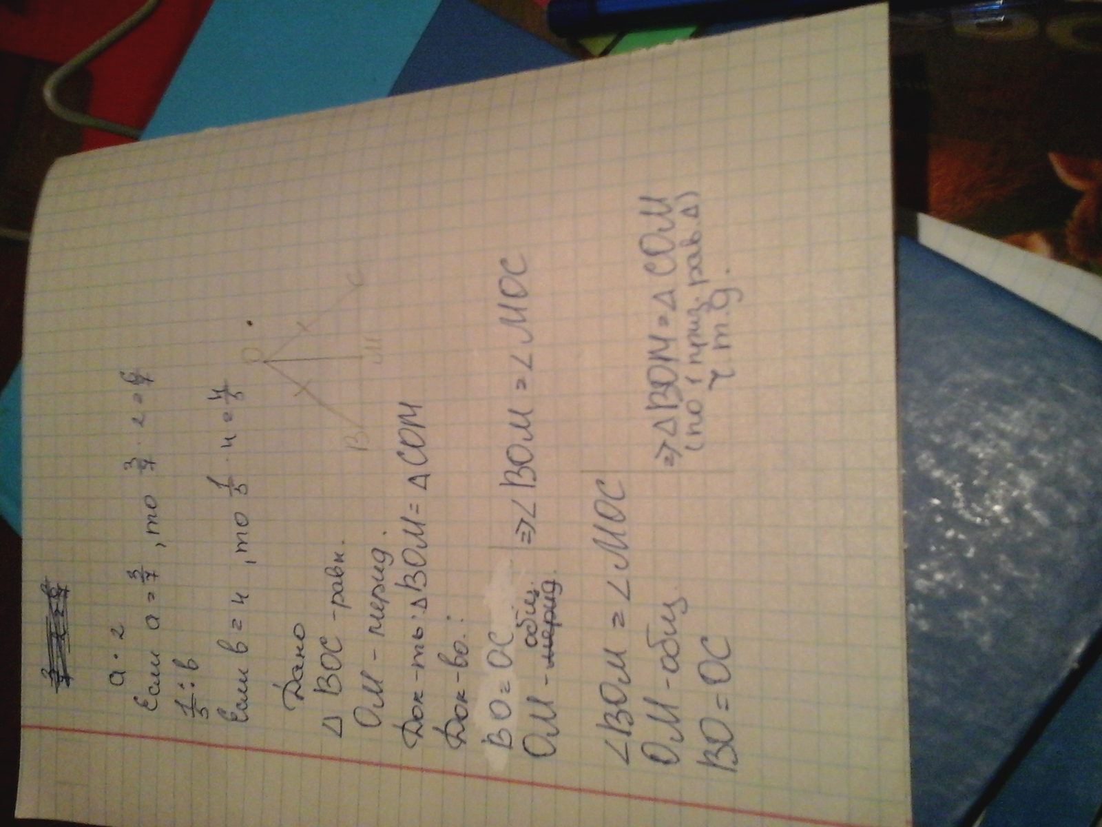 В равнобедренном треугольнике ВОС с основанием ВС проведена медиана ОМ Докажите равенство треугольников ВОМ и СОМ