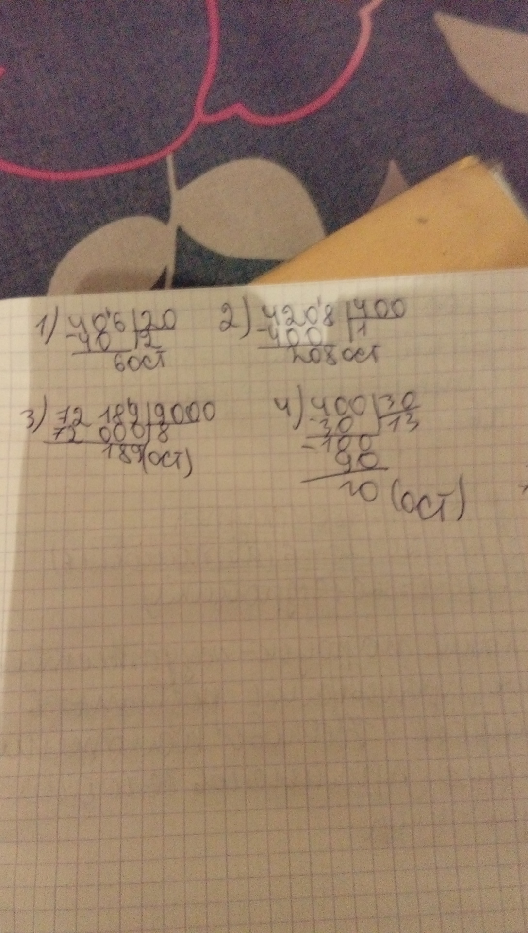 используя разные способы вычисления,выполни деление с остатком: 406:(2*10) ; 4208:(4*100) ; 72189:(9*1000) ; 400 :(10*3)