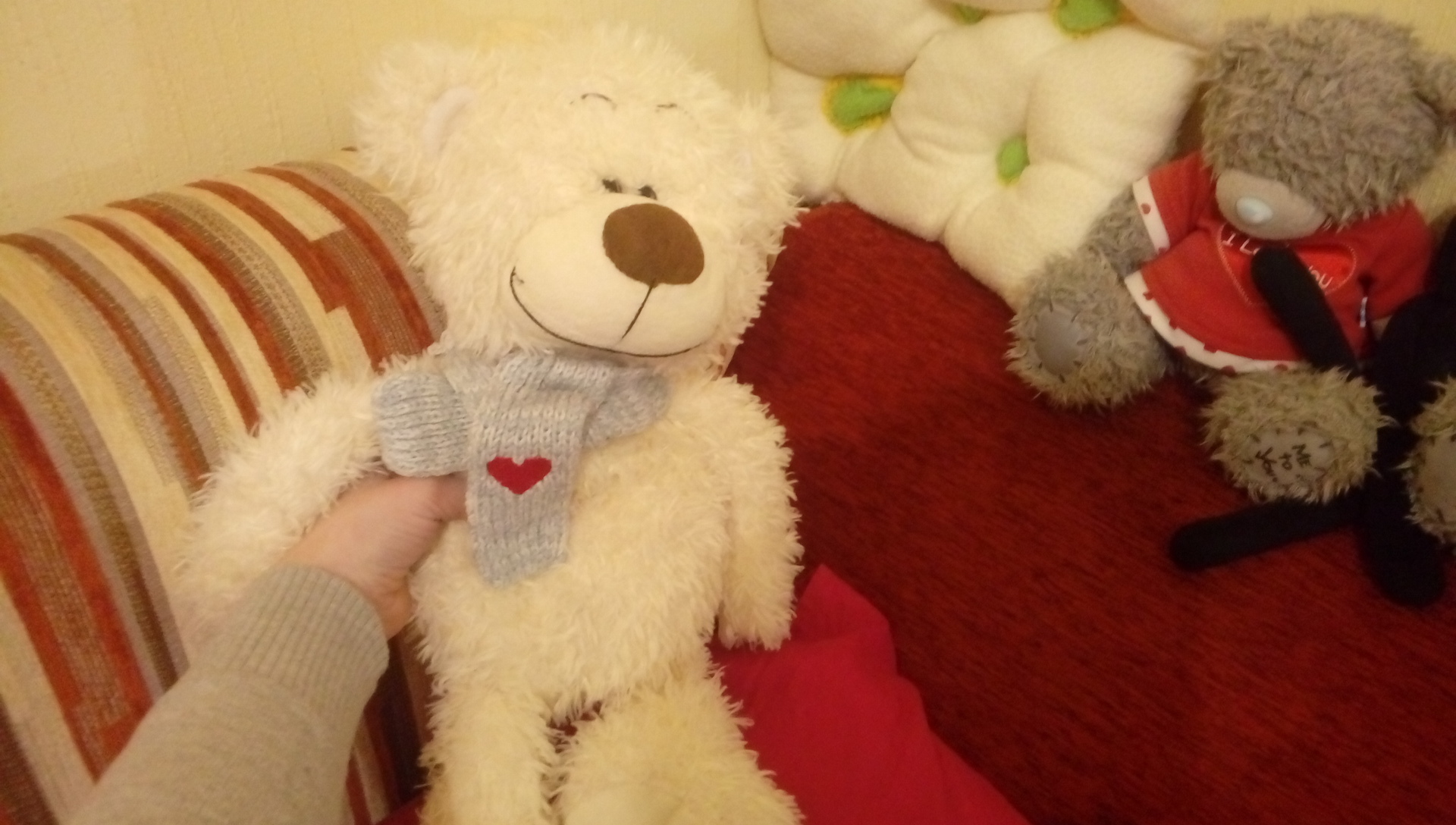 У меня есть игрушечный медведь.Он белого цвета.У него красивые Маленький глазки.Издали они чёрного цвета,но на самом дела они тёмного каричнего цвета.У него на лице красивая улыбка.На шеи медведя красивый,серый шарф.С красивым рисунком в виде сердца.