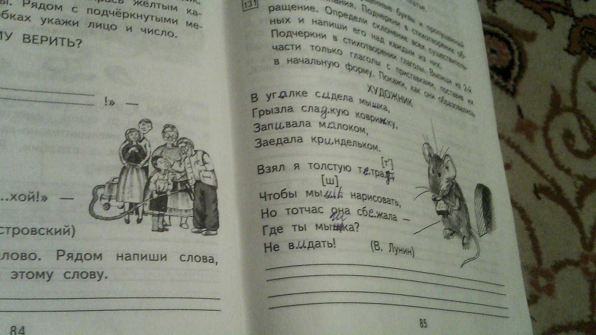 Существительные: уголке, мышка, коврижку, молоком, крендельком, тетрадь, мышь, мышка