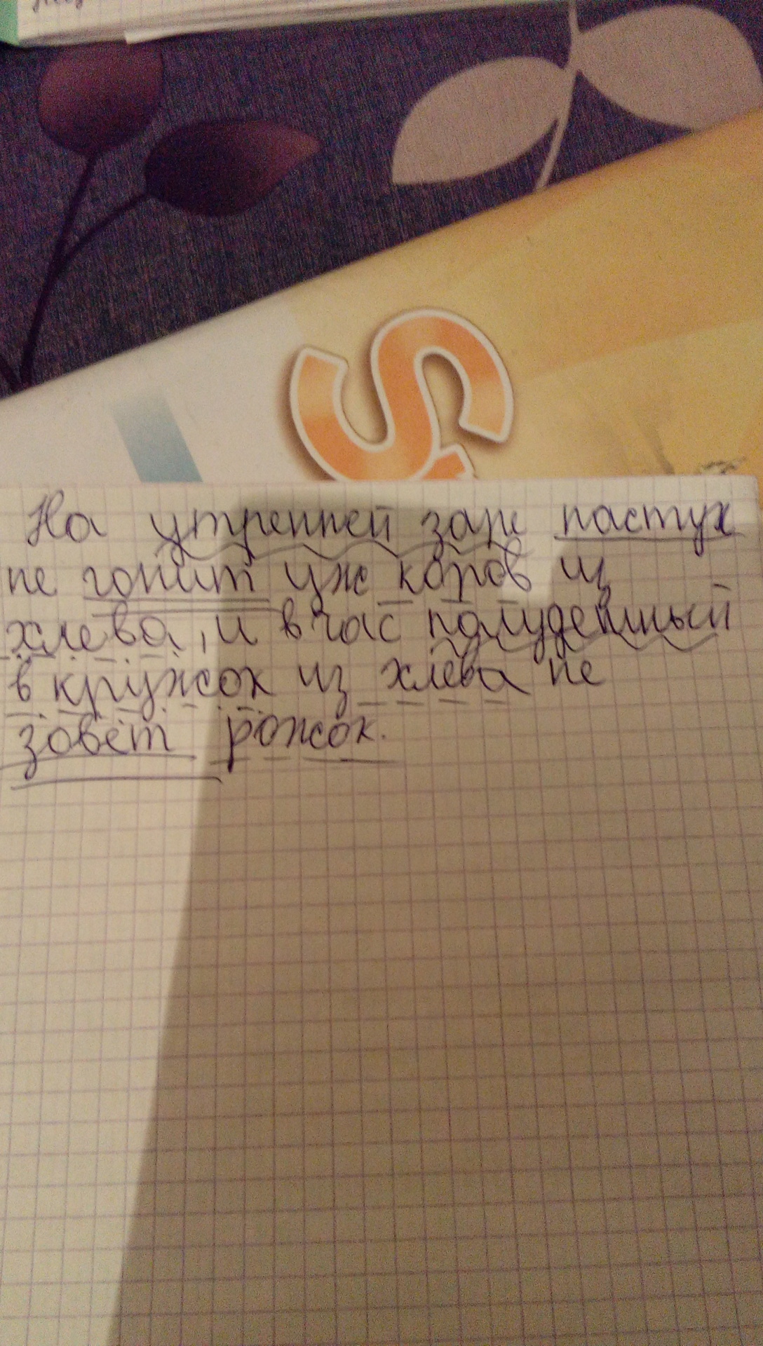 Срочно!.На утренней заре пастух не гонит уж коров из хлева, и в час полуденный в кружок из хлева не зовет рожок. Синтаксический разбор