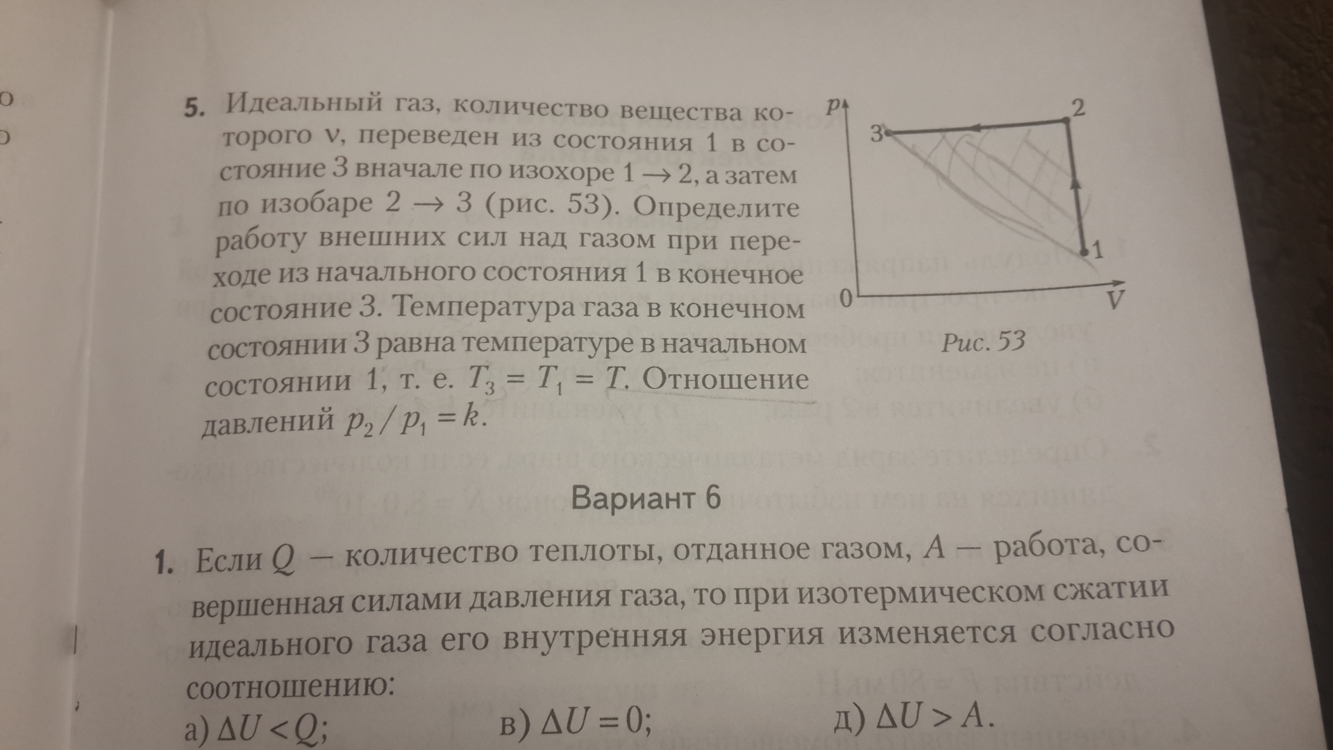 Тут использовано очевидное p2=p3 и неочевидное T2 = kT. Почему так? потому что 1-2 изохора, значит по закону Шарля температура возрастает во столько же раз во сколько и давление, то есть в k раз