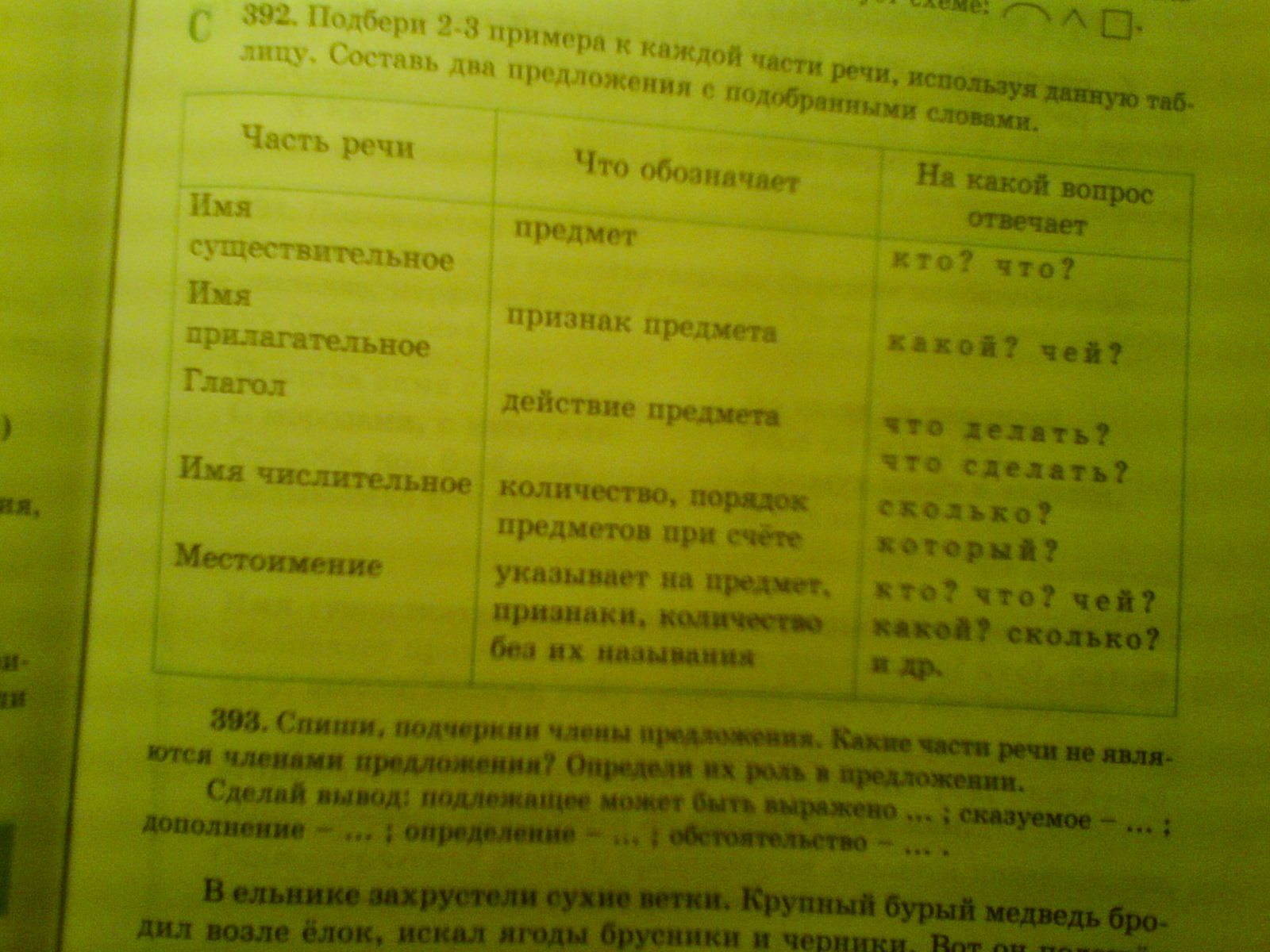 подбери 2-3 примера к каждой части речи, используя данную таблицу. Составьдва предложения с подобранными словами.