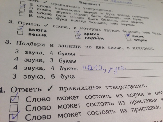 Ребята помогите пожалуйста номер три на каждой строке написать два слово где четыре звука и четыре буквы я написала уже