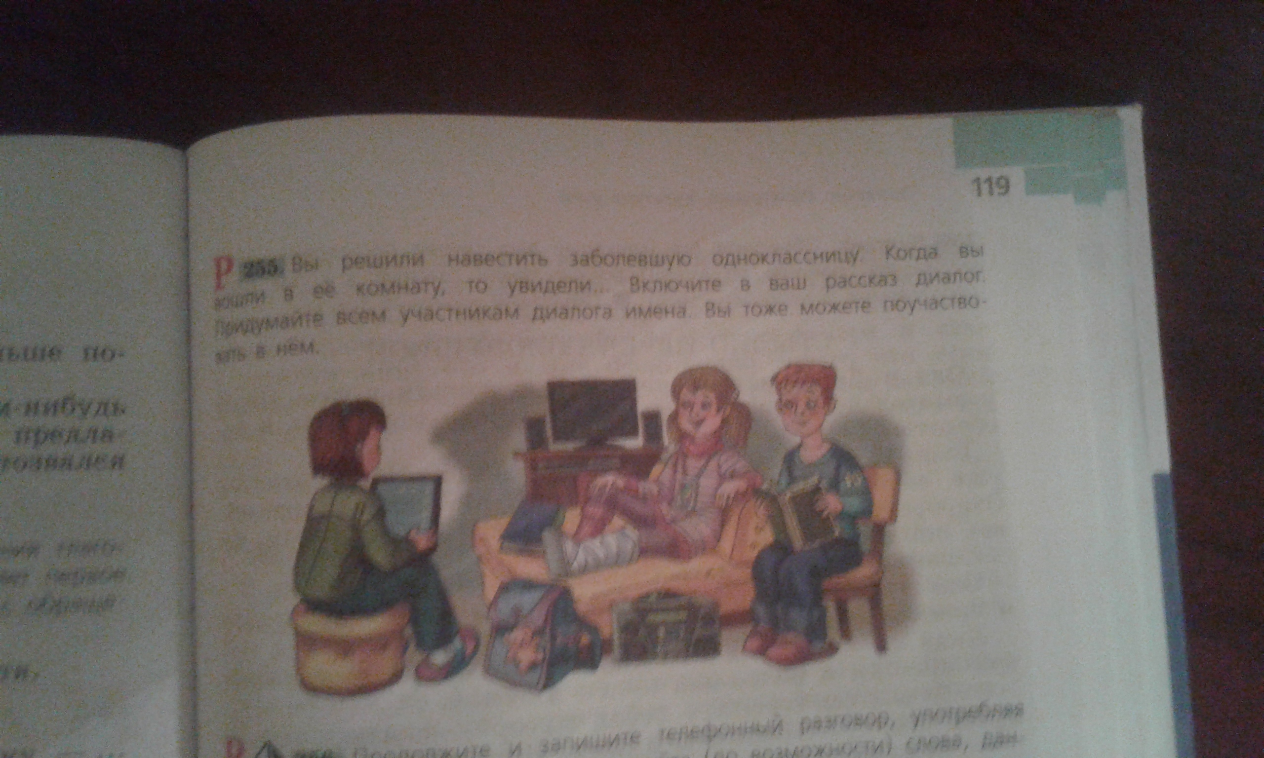 -Привет, Лера, как самочувствие? -Нормально а сам как, Кирилл? -Тоже. Весь класс передал тебе скорейшего выздоровления. -Спасибо. А как в школе? -Контрольная по математике была. -А сложные задания были? -Бывали. Мне уже пора домой. Пока Лера! Выздоравливай поскорее! -Хорошо. Пока Кирилл! (Подойдёт?)
