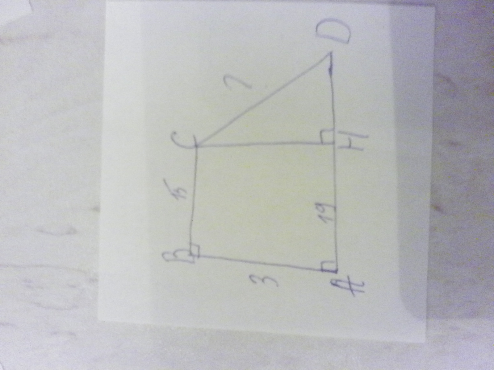 Основания прямоугольной трапеции равны 15 дм и 19 дм. Меньшая боковая сторона равна 3 дм. Вычисли большую боковую сторону трапеции.