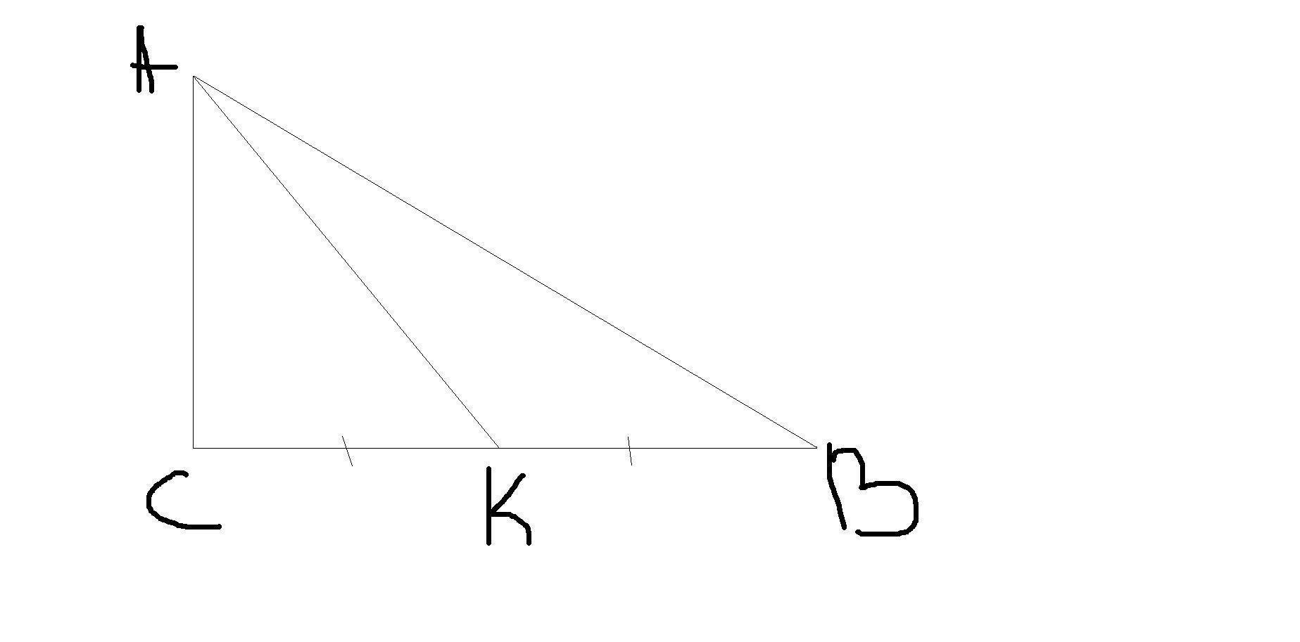 катет прямоугольного треугольника равен 8 см а медиана проведенная к этому катету, равна 2√13см. Найдите гипотенузу треугольника. Помогите пж!!! С РИСУНКОМ ПЛИЗ
