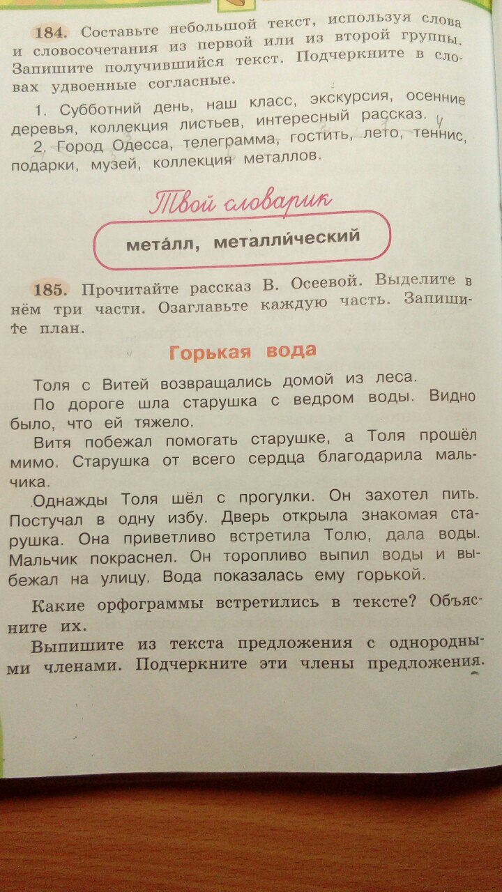 Ребята задание легкое! Обозначьте пожалуйста подлежащее и сказуемое. Внизу текст, упражнение 185 "Горькая вода"