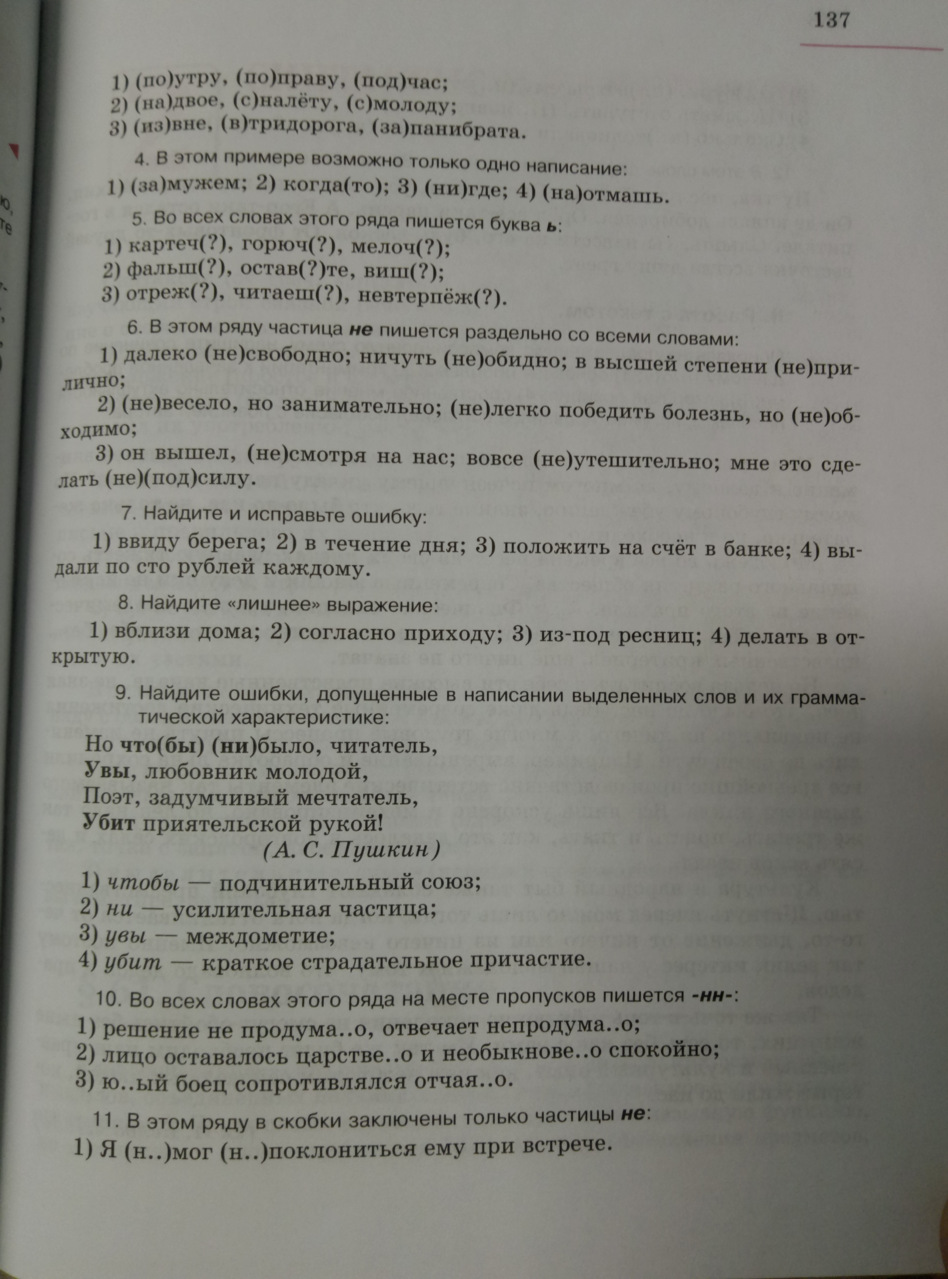 4. 1) замужем; 2) когда-то; 3) нигде; 4) наотмашь.