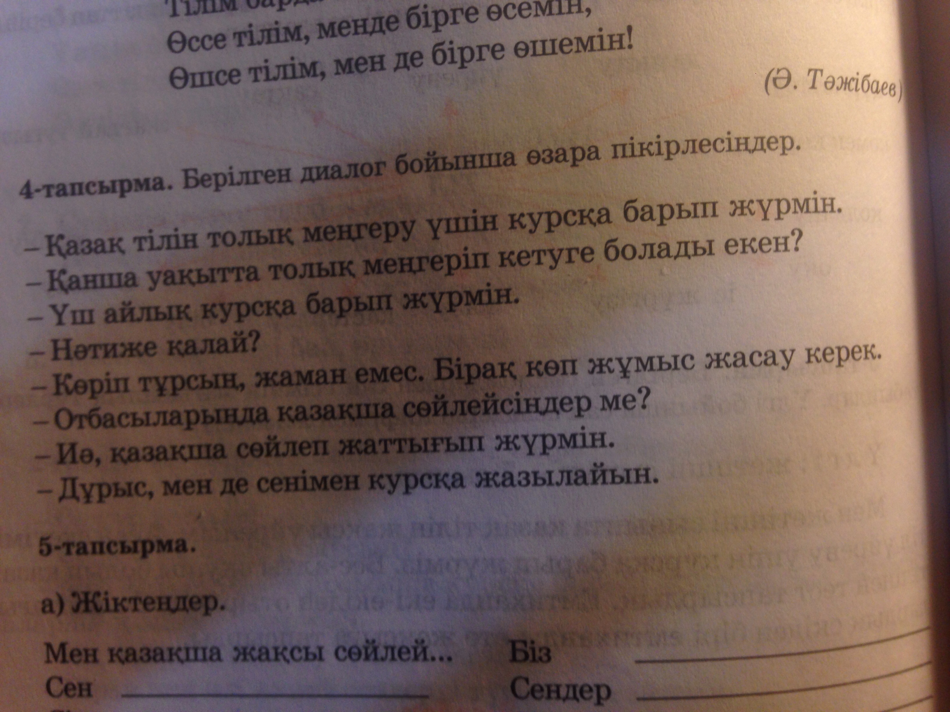 Хожу в курс казахского языка чтобы в полностью усвоить.в какое время можно в полностью освоить .хожу 3месячный курс.Как результат?.Как видеш не плохо,но надо много трудиться.В Семие разговариваете по казахский?.Да разговаривая по казахский я тренеруюсь.Правильно ,я тоже запишусь с тобой в курсы.