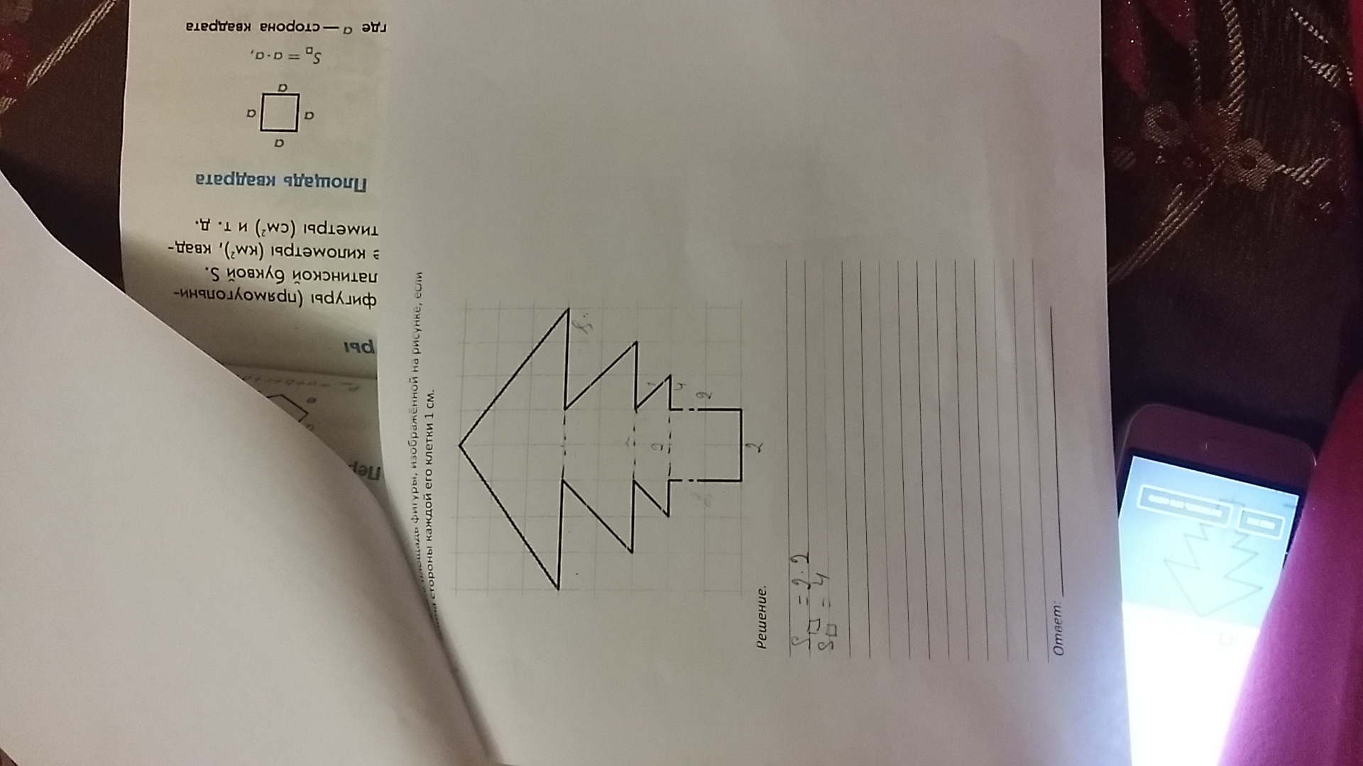 найдите площадь фигуры, изображенной на рисунке, если длина стороны каждой его клетки 1 см