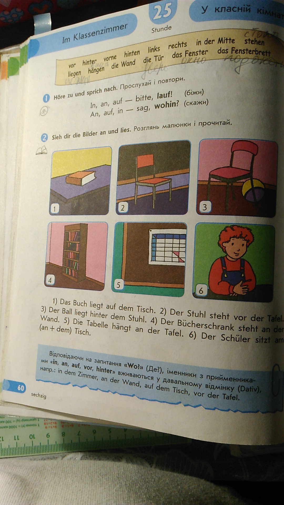 6) Ученик сидит за столом.