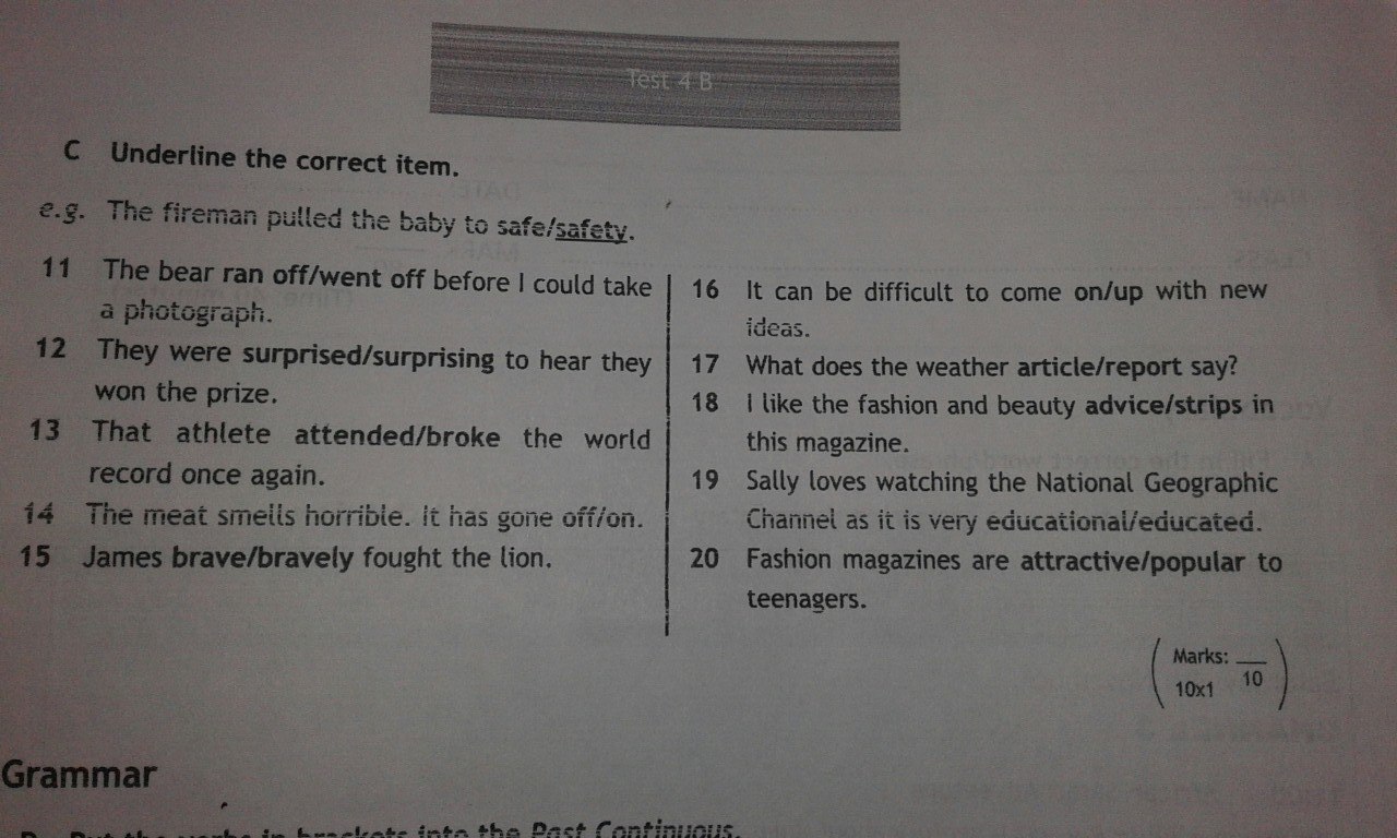 11 ran off 12surprised 13 broke 14 gone off 15 bravely 16 up 17 report 18 advice 19 educational 20 attractive