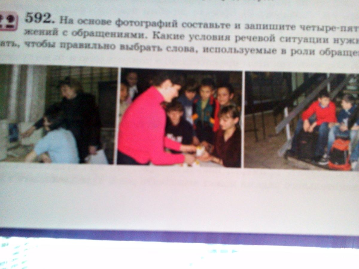 На основе фотографий составьте 4-5 предложеений с обращениями.