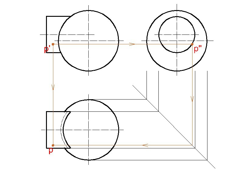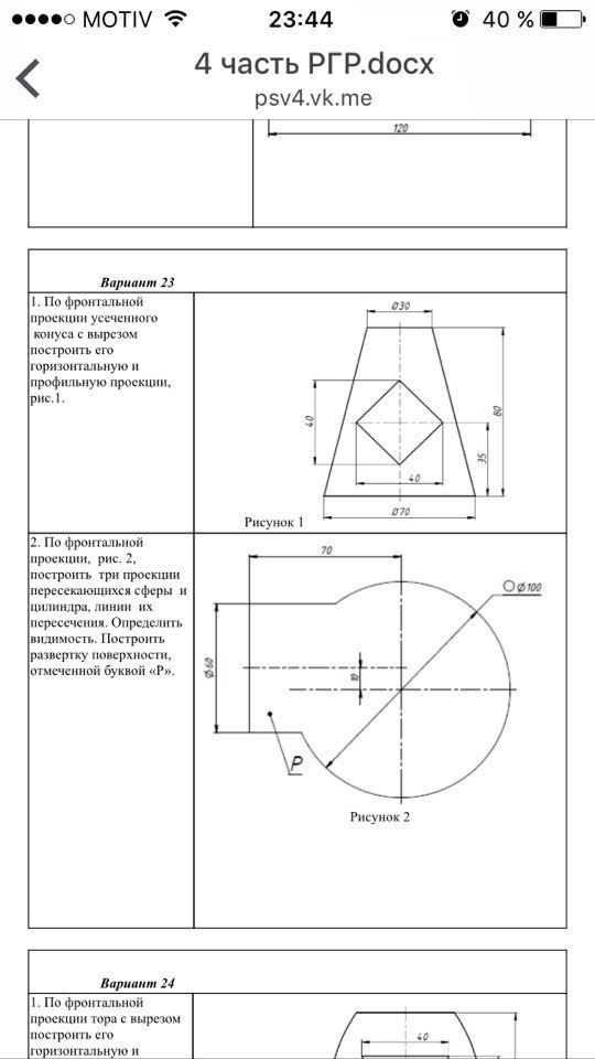 По фронтальной проекции, рис.2, построить 3 проекции пересекающихся сферы и цилиндра, линии их пересечения. Определить видимость. Построить развёртку поверхности, отмеченной буквой "Р".