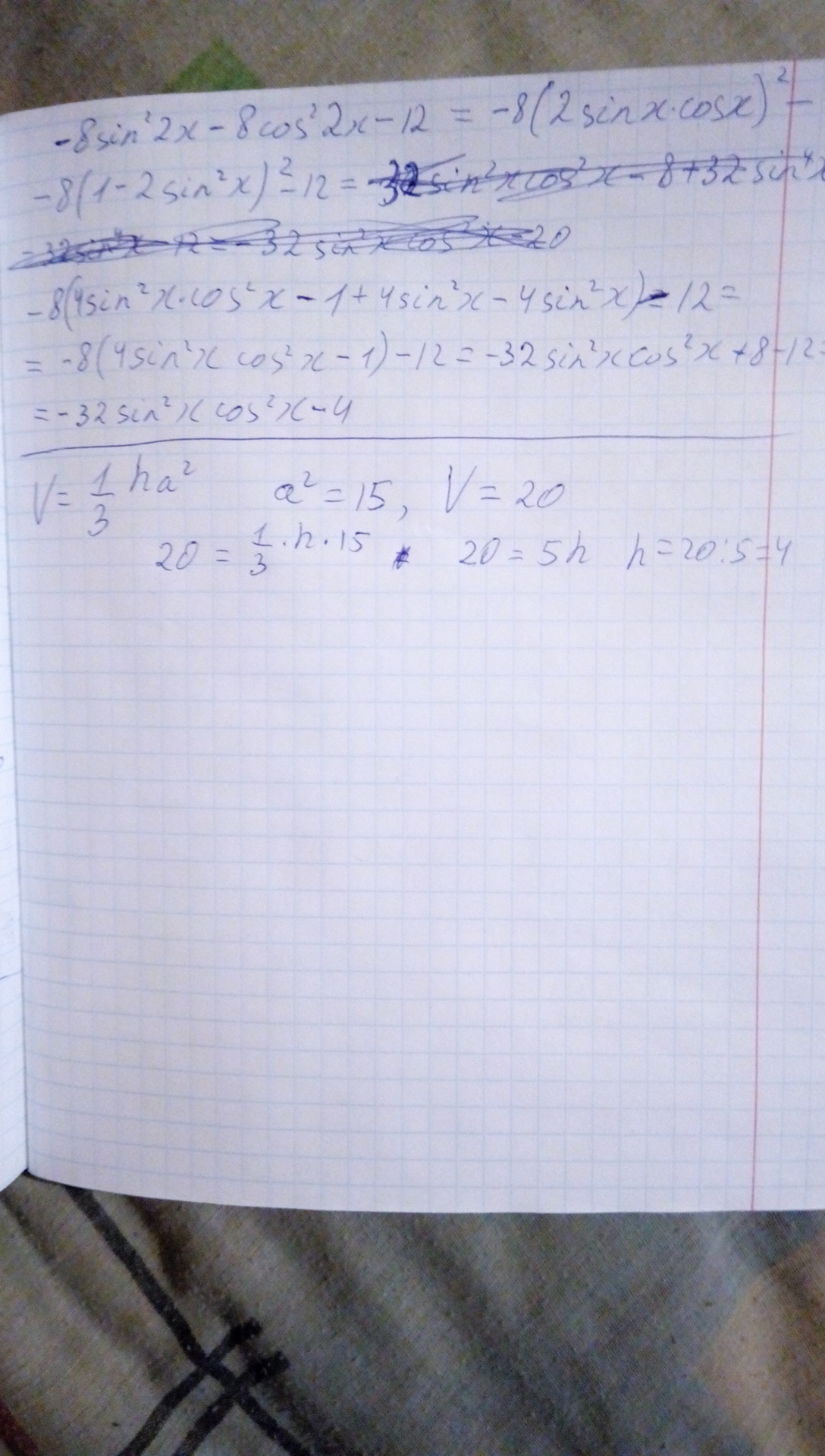 Площадь основания четырёхугольной пирамиды равна 15, объём пирамиды равен 20. Найдите высоту пирамиды.
