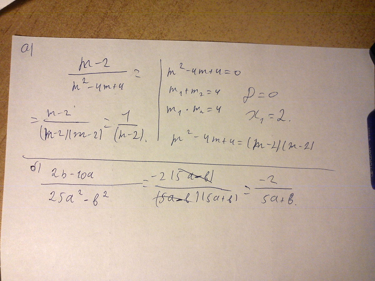 (между m-2 и m во 2й -4m +4 стоит черта а под б так же)
