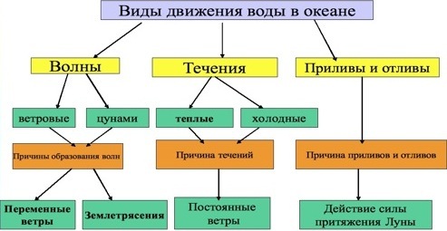 какие основные виды движений воды в океанах существуют?Какова главная причина этих движений в приповерхностных слоях вод?