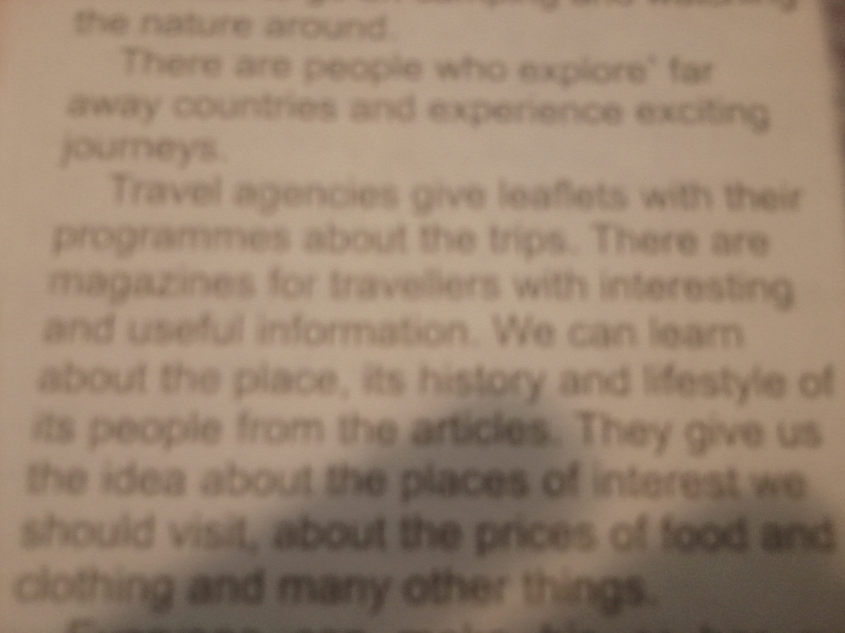 Туристические агенства раздают людям листовки со своими предложениями, где можно отдохнуть. Также у них есть множество журналов для путешественников с интересной и полезной информацией. Из этих статей в журналах мы можем узать о месте, куда направляемся, об его истории, о быте людей там живущих. Они подсказывают нам какие достопримечательности нам нужно посетить, о питании в этом месте, о разных магазинах с одеждой и другими товарами.
