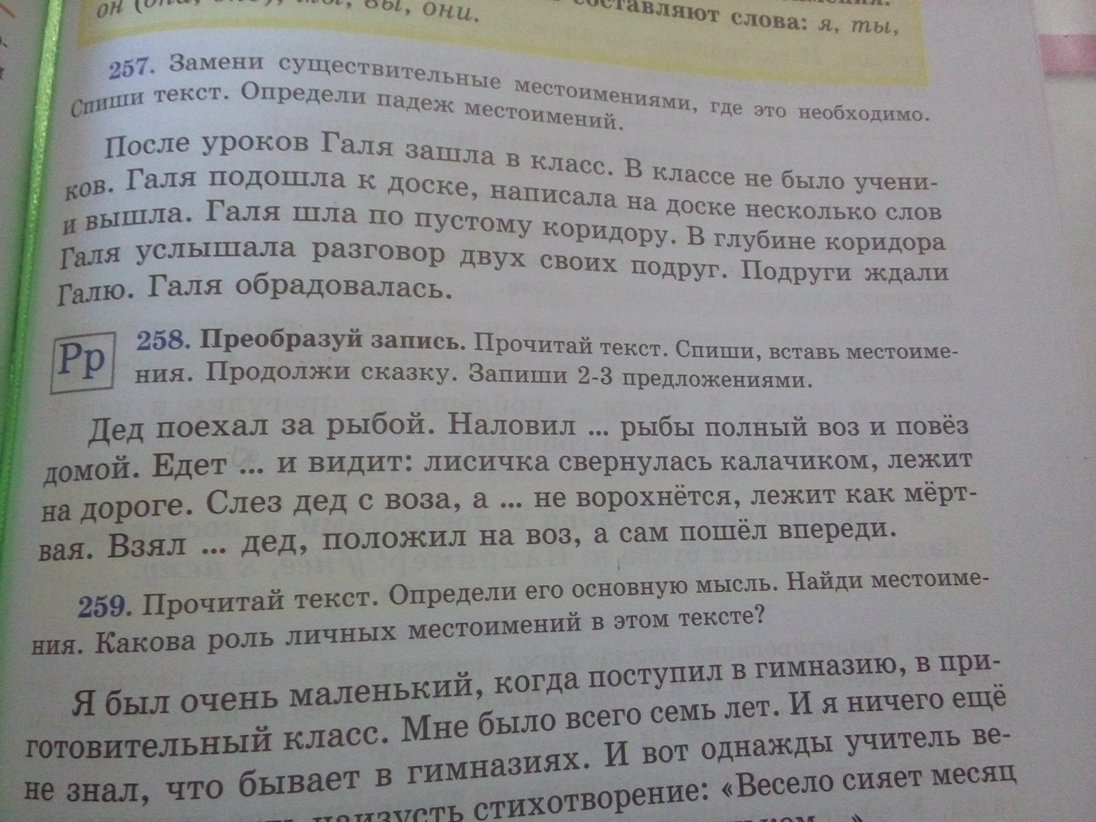 преоббразуй запись прочитай текст спиши вставь местоимения продолжи сказку запиши 2-3 предложениями номер 258. помогите пожалуйста очень нужно