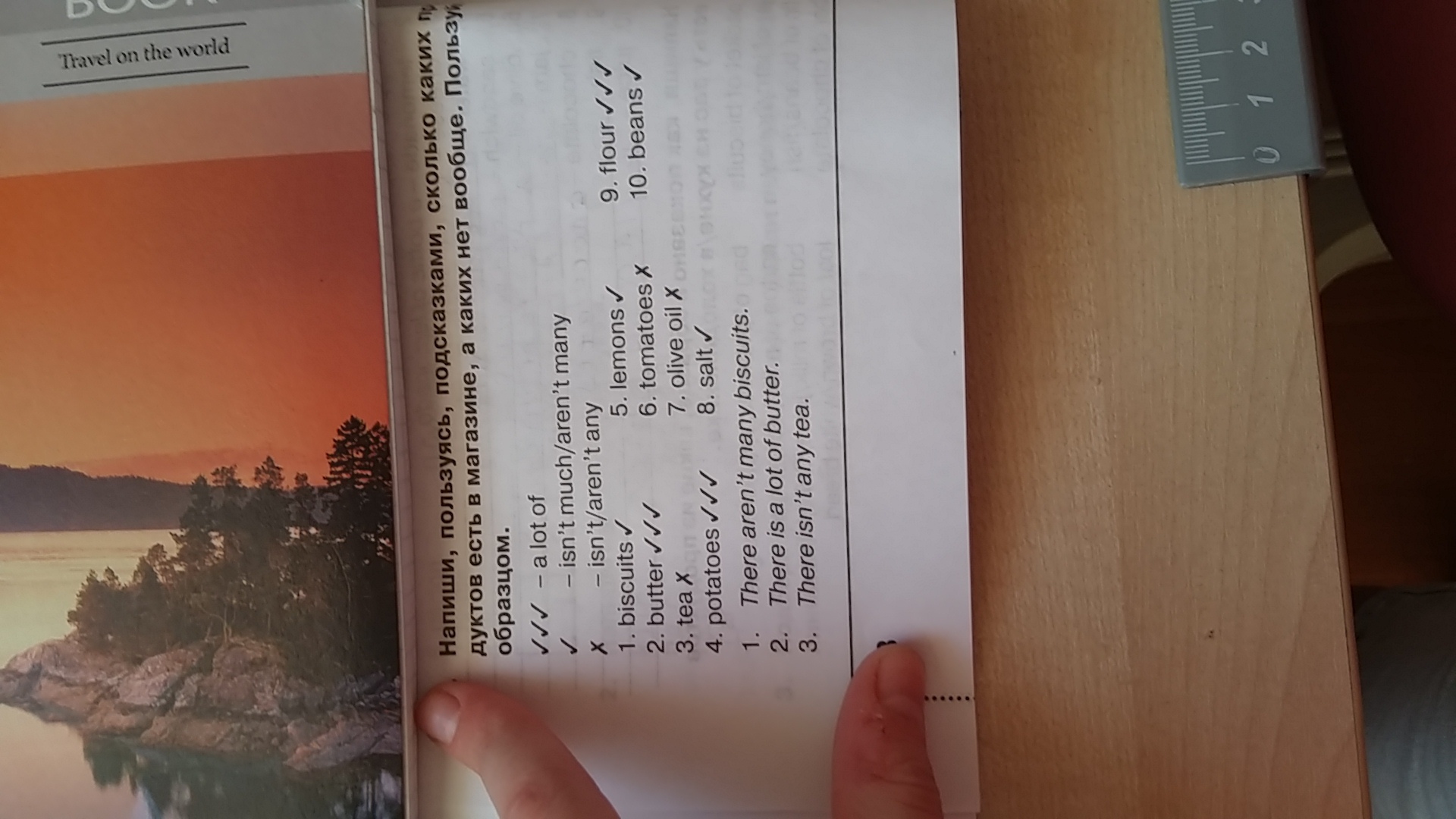напиши пользуясь подсказками сколько каких продуктов есть в магазине а каких Нет вообще пользуясь образцом