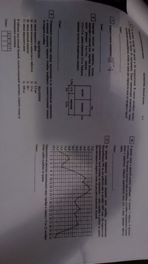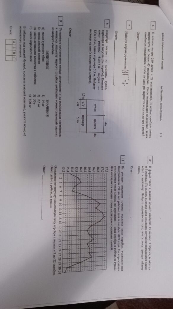 6)как минимум 6 автобусов,8)14 кв.м.,9)А-3,Б-1,В-2,Г-4;11)20