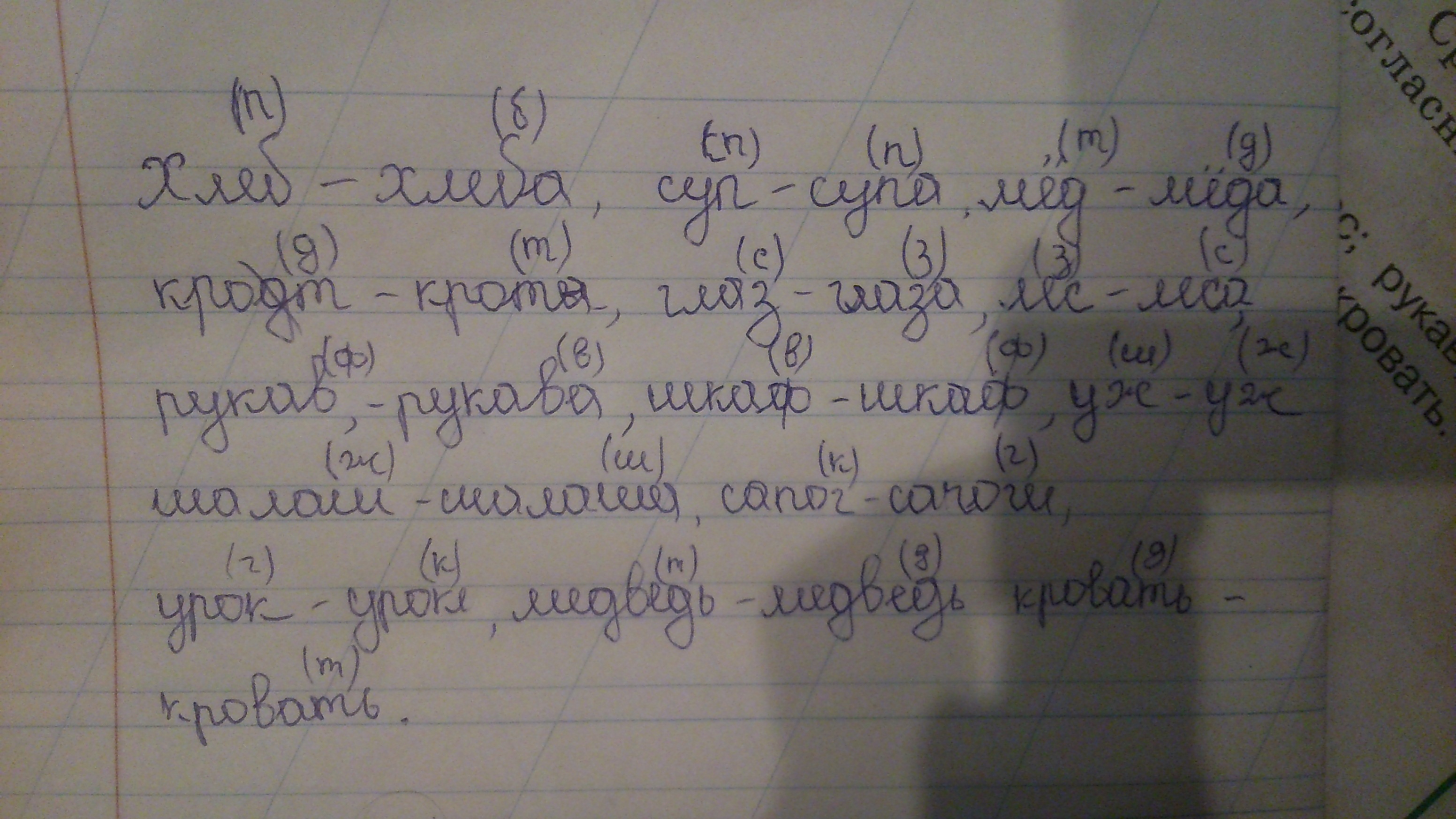 Шкаф - шкафы, уж - ужи, урок - уроки, медведь - медведи, кровать - кровати.