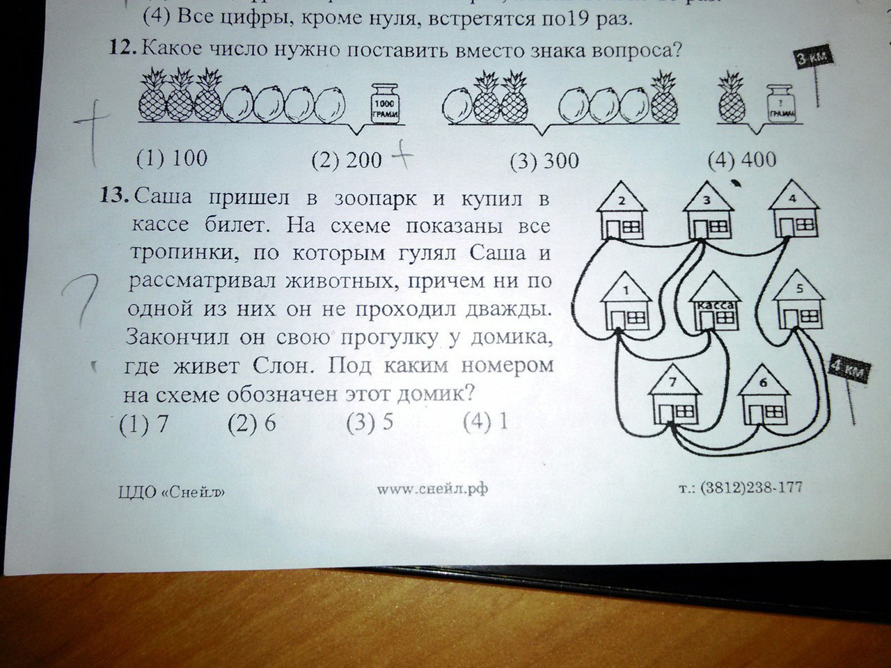 Саша пришел в зоопарк и купил в кассе билет. На схеме показаны все тропинки, по которым гулял Саша и рассматривал животных, причем ни по одной из них он не проходил дважды. Закончил он свою прогулку у домика, где живет Слон. Под каким номером на схеме обозначен этот домик?