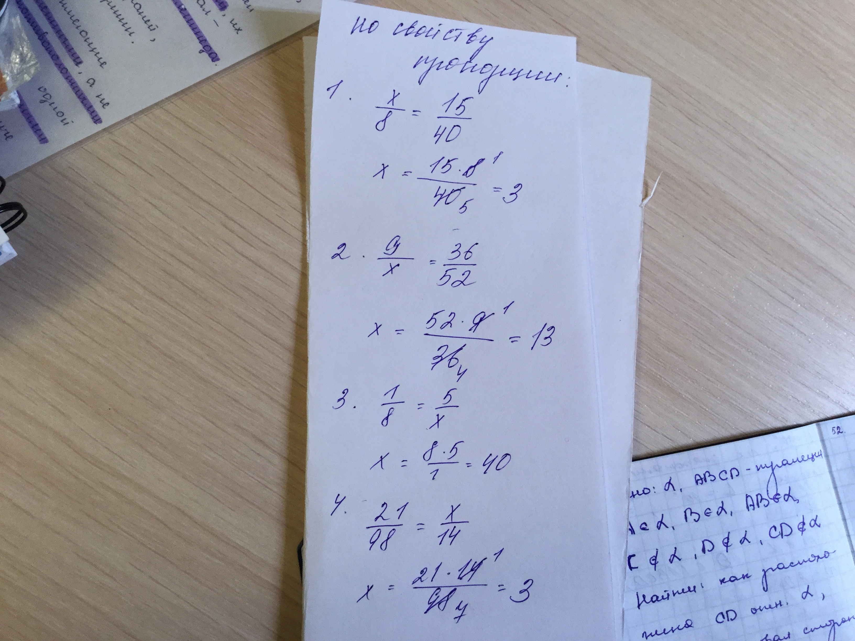 найти значение х, при котором данное равенство верно х/8=15/40 2) 9/х=36/52 3) 1/8=5/х 4) 21/98=х/14