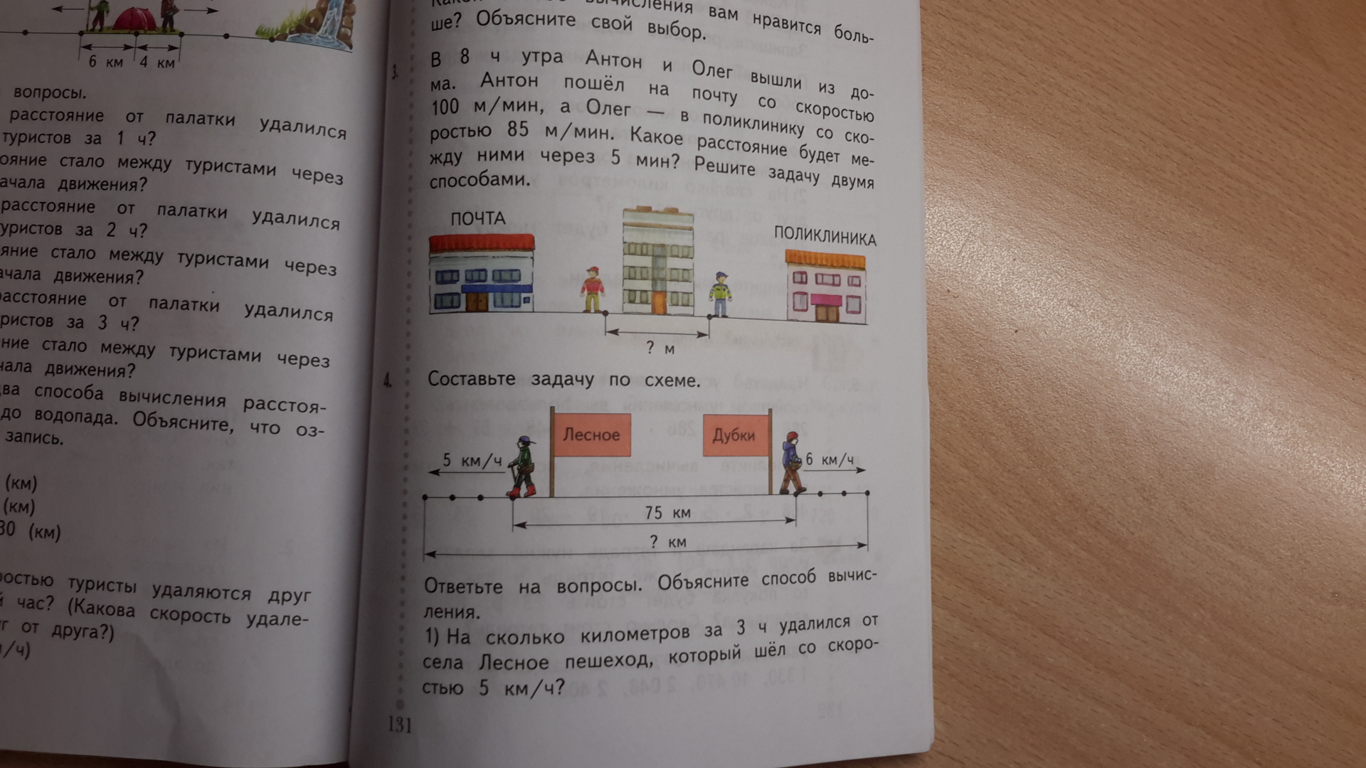 1) На сколько км за 3 ч удалился от села Лесное пешеход, который шел со скоростью 5 км/ч?