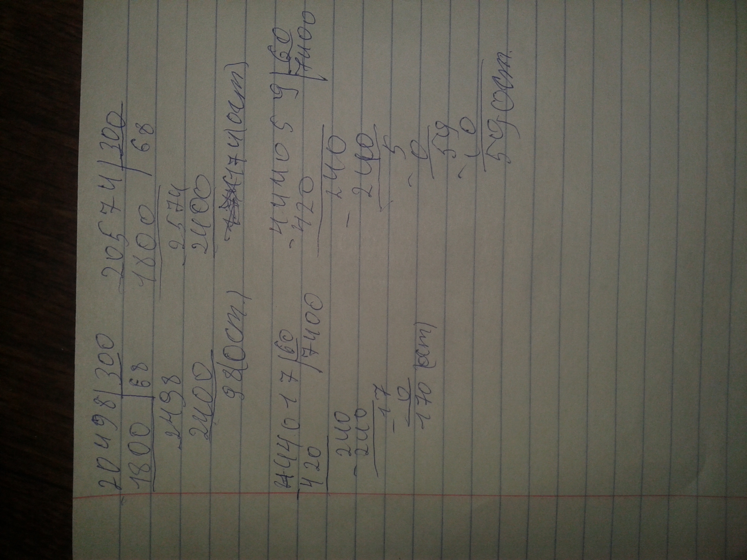 выполни действия 20400:300 444000:60 в столбик пожалуйста