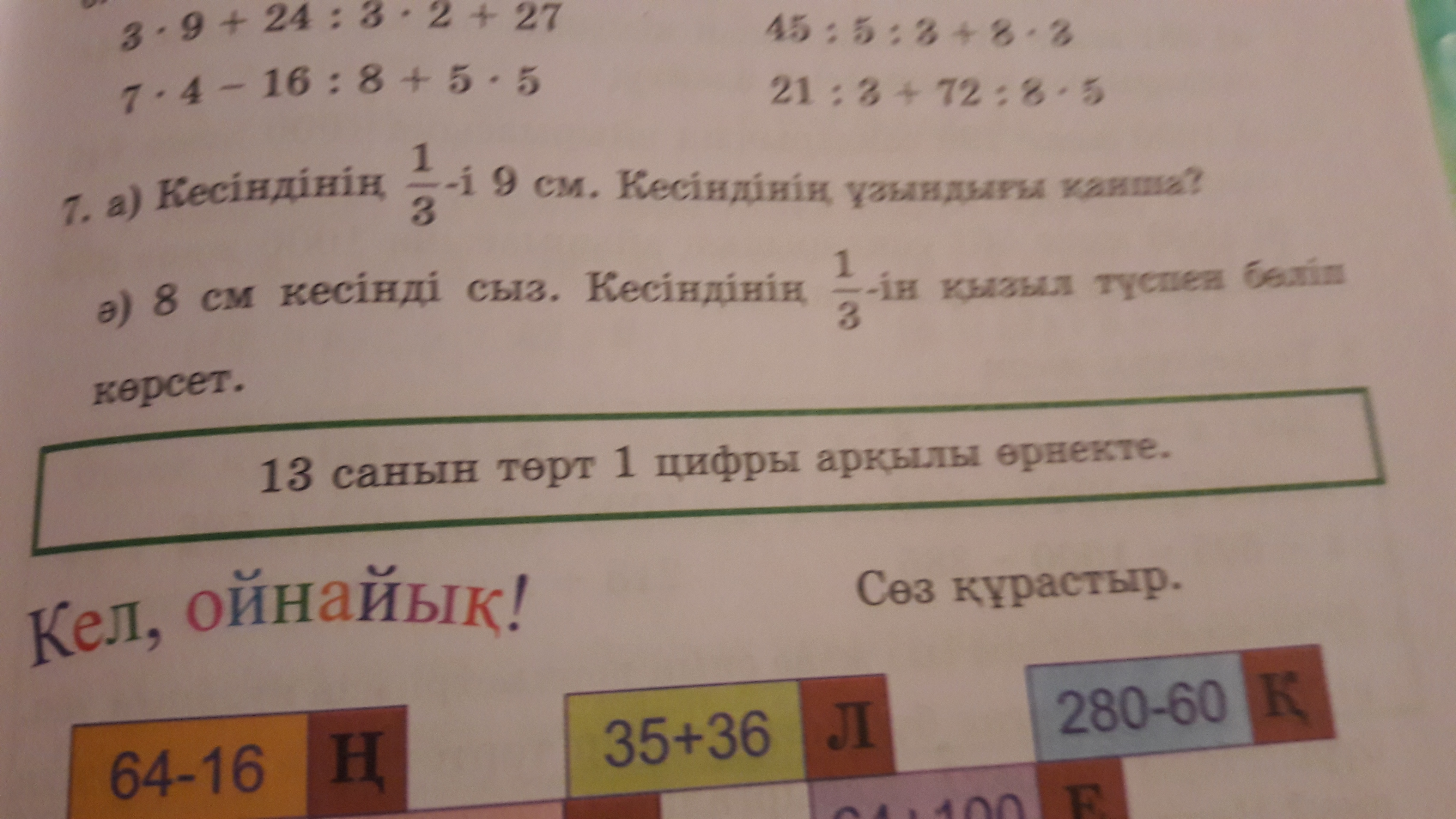 а) кесіндінің 1/3-і 9 см. кесіндінінң ұзындығы канша?
