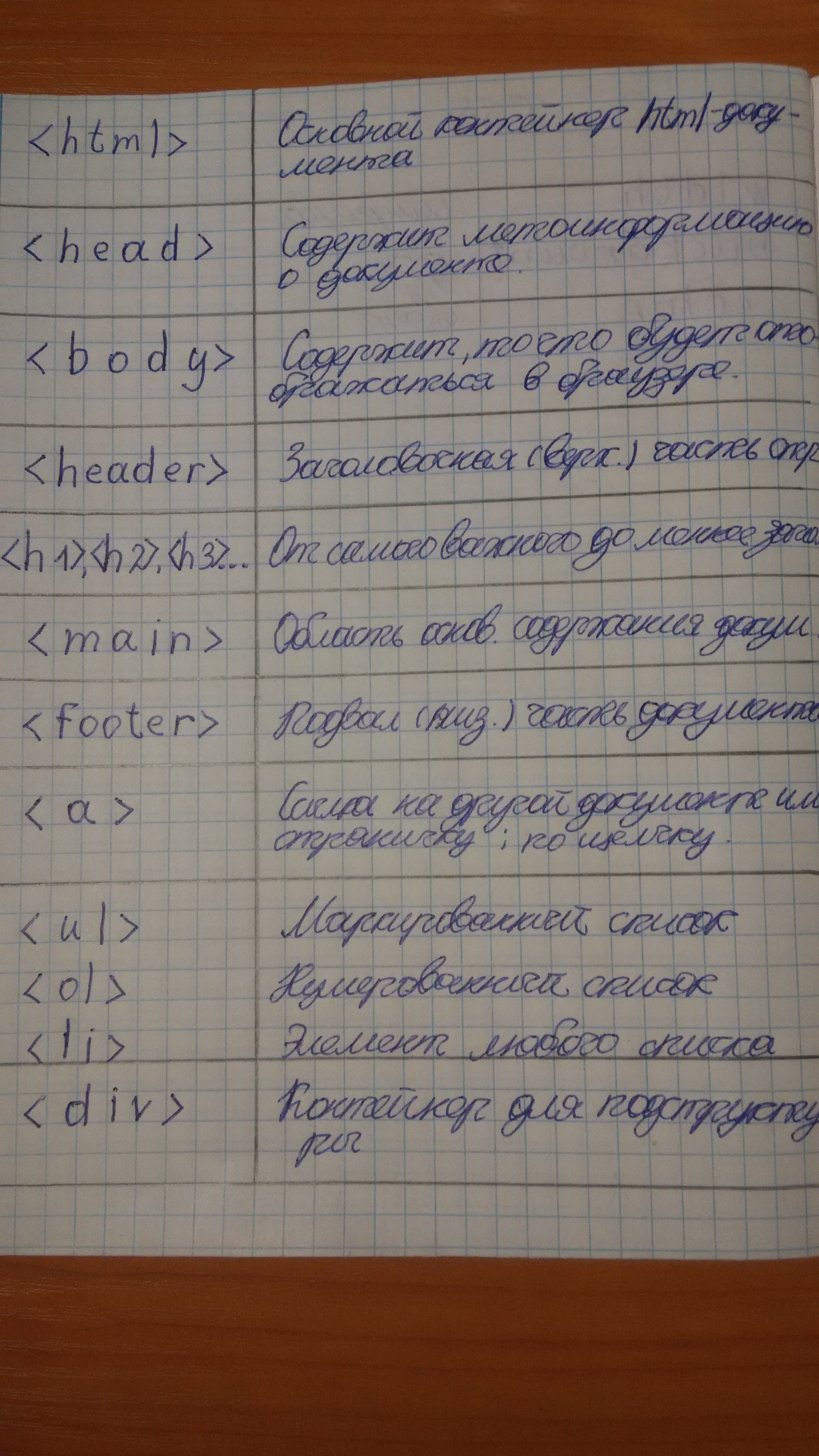 основные команды для создания простой страницы