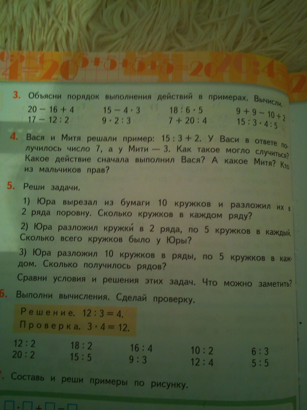 Вася прав, он сперва поделил 15 на 3 получилось 5 и потом сложил пять с двойка Митя наоборот .