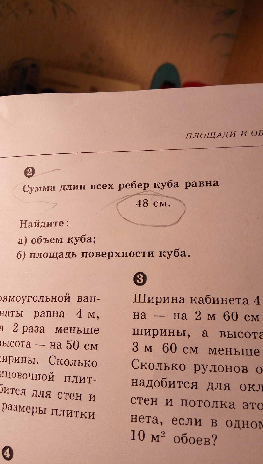 Площадь поверхности: 48×48=2304.Обьём:48×48×48=110592