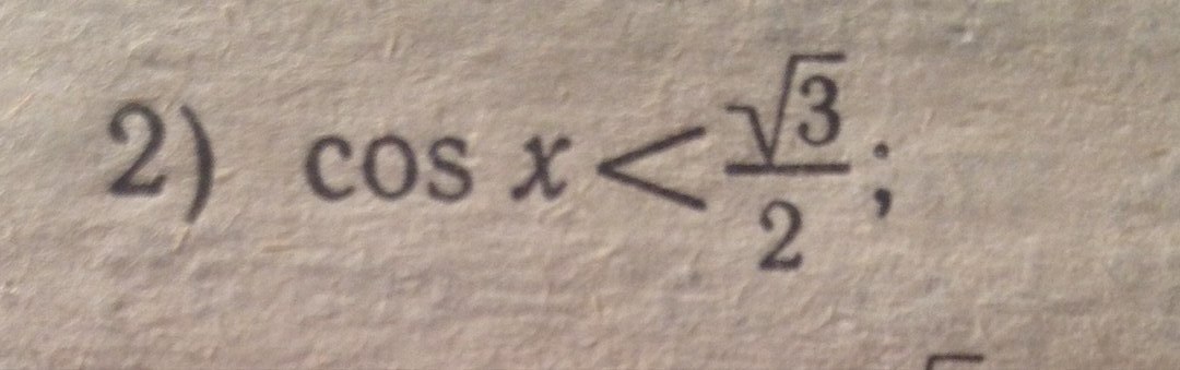 arccos(√3/2)+2πn<2π-arccos(√3/2)+2πn, n∈Z;