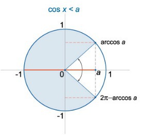Решение неравенства вида cosx<a записывается в виде
