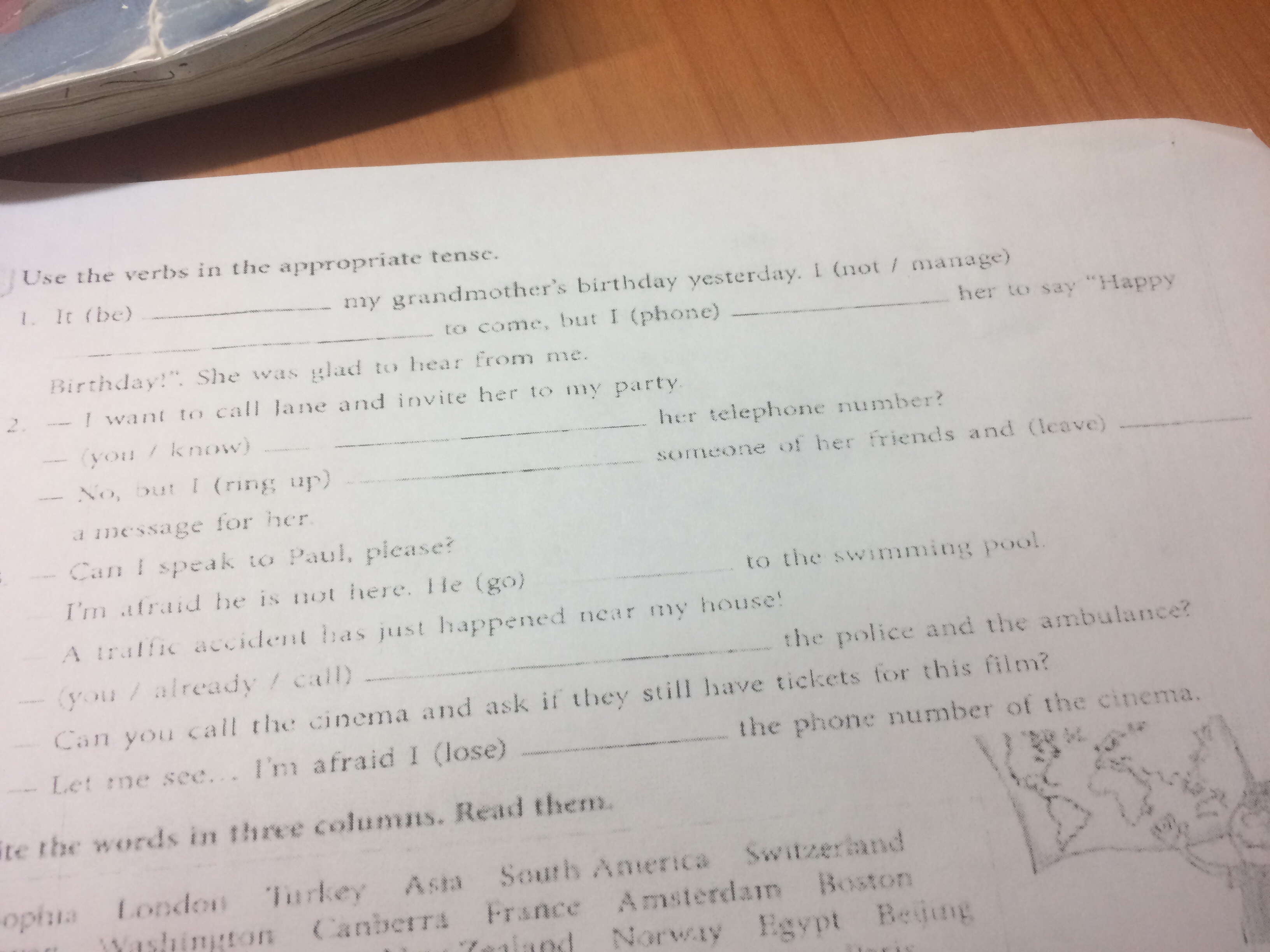 1) was, didn't, phoned.