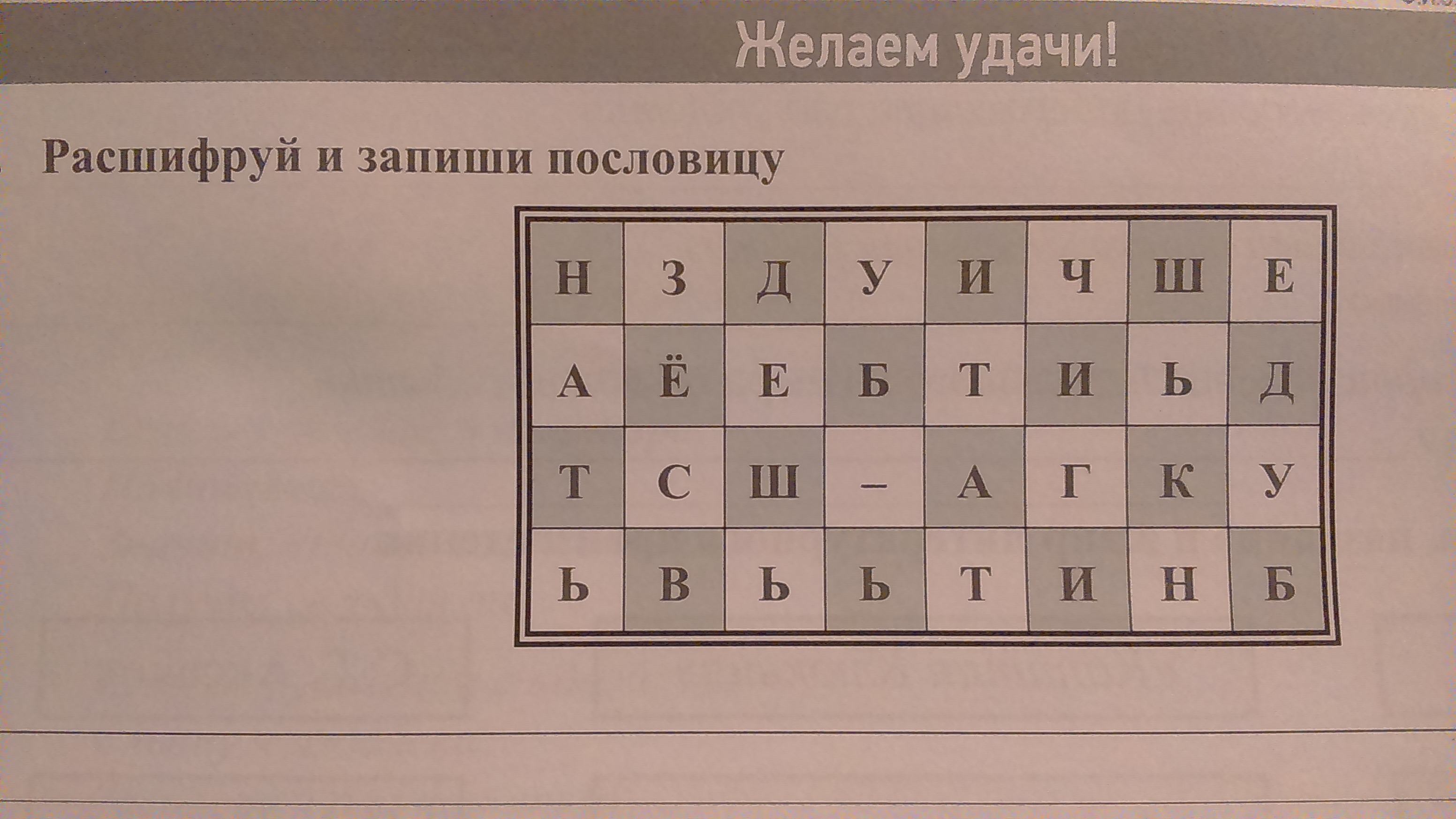 "Будешь книги читать - будешь всё знать". Начинайте читать пословицу на поле с правого нижнего угла, сначала вверх, потом поворачиваете на следующий столбик влево и т.д. змейкой.