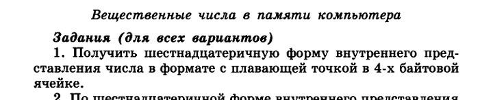 Итого число -26,28125 в машинном представлении в 4-байтовой ячейке в формате с плавающей запятой = 11000001110100100100000000000000