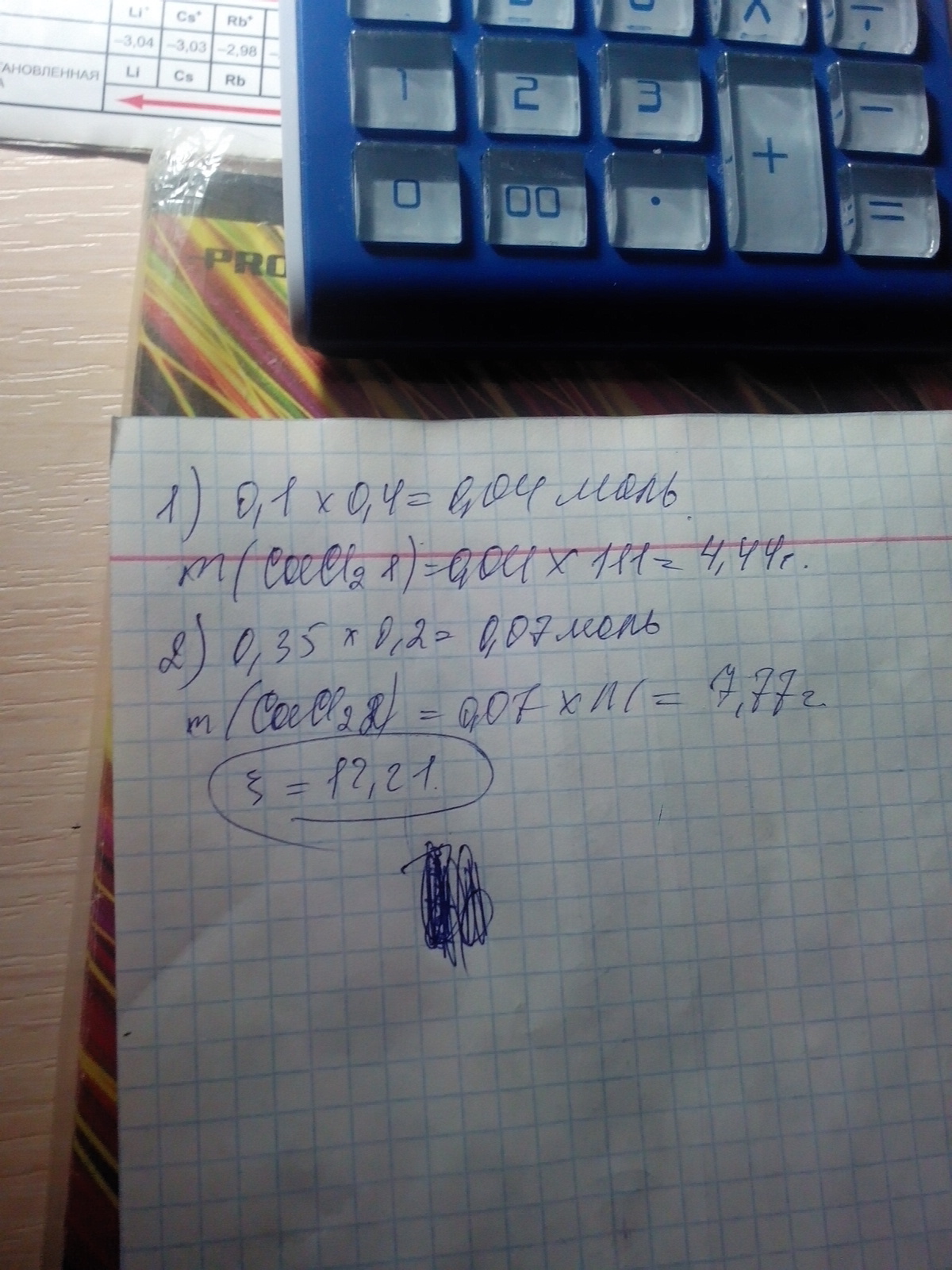 Пожалуйста решите задачку: К 100 мл 0,4 М раствора СаСl2 прилили 350 мл 0,2 М раствора той же соли.Полученный раствор выпарили досуха. Сколько граммов соли получили?
