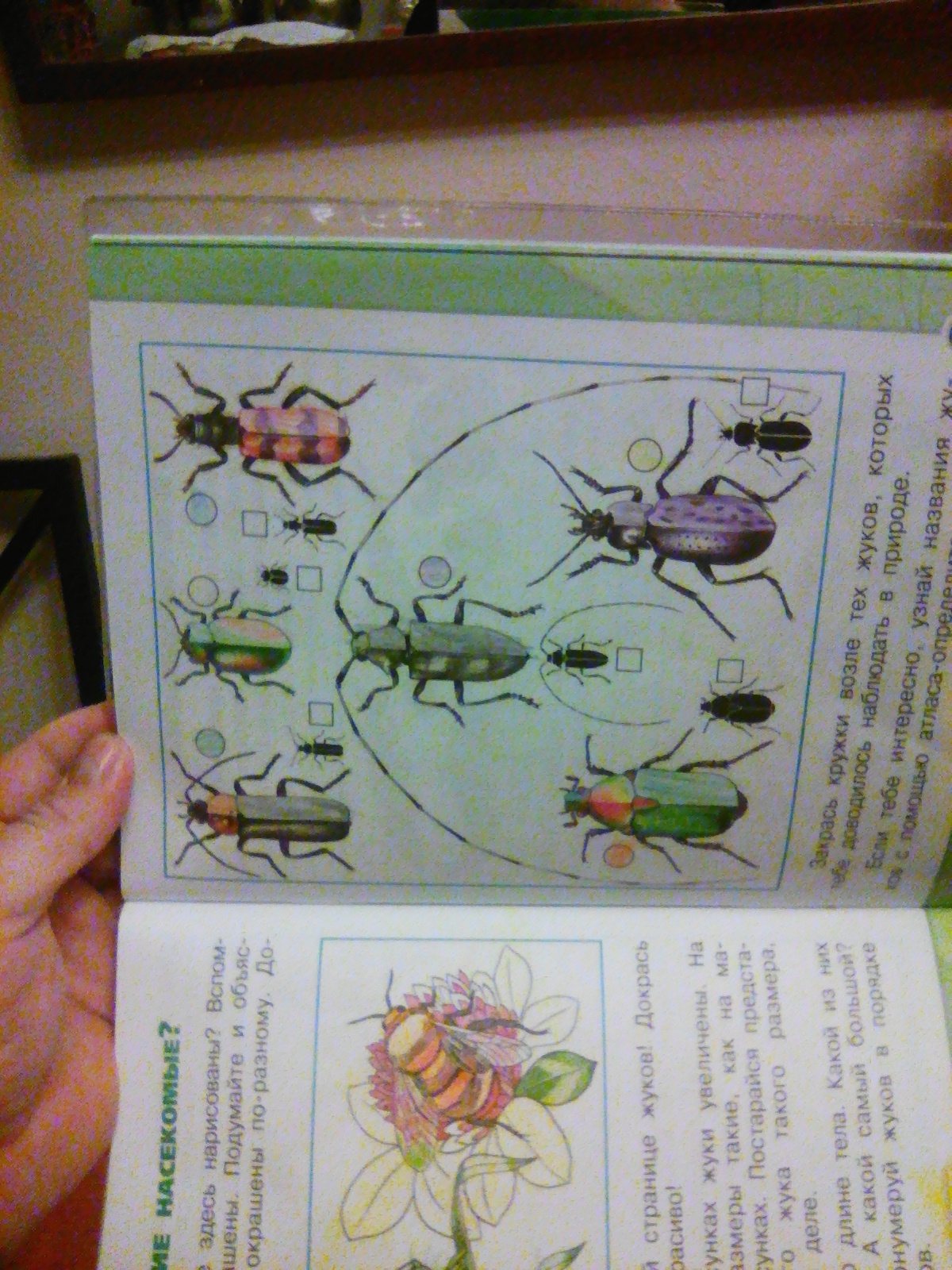 слева на право низ: бронзовка золотисттая. жужелица садовая. середина: серый длинноусый дровосек. верх: жук-мягкотелка, листоед великолепный, пестряк пчелиный