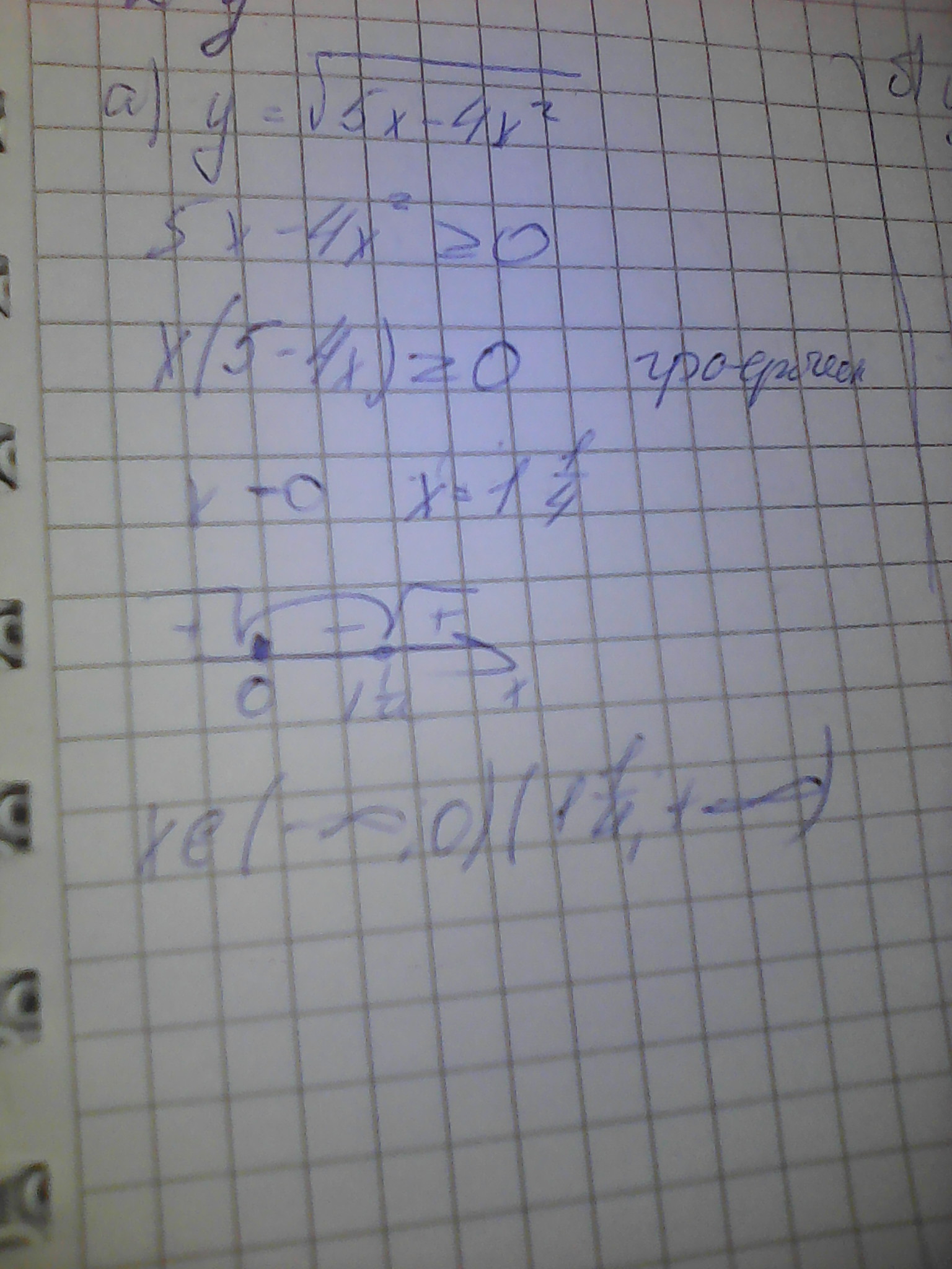 найти область определения функции а) у=корень квадратный 5х-4хво второй степени ; б) у= корень квадратный х во второй степени + 2х - 80деленное на 3х - 36 ; в) у= корень квадратный 9-х во второй степени + корень квадратный 5 - 2х.