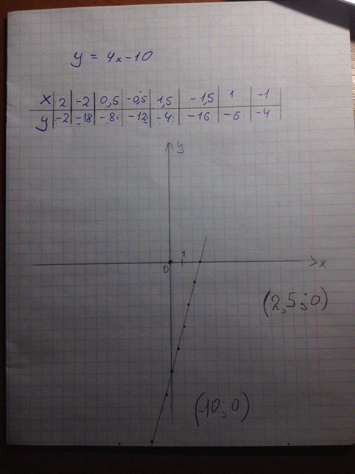 найдите координаты точек пересечения графика функции y=4x-10 с осями координат