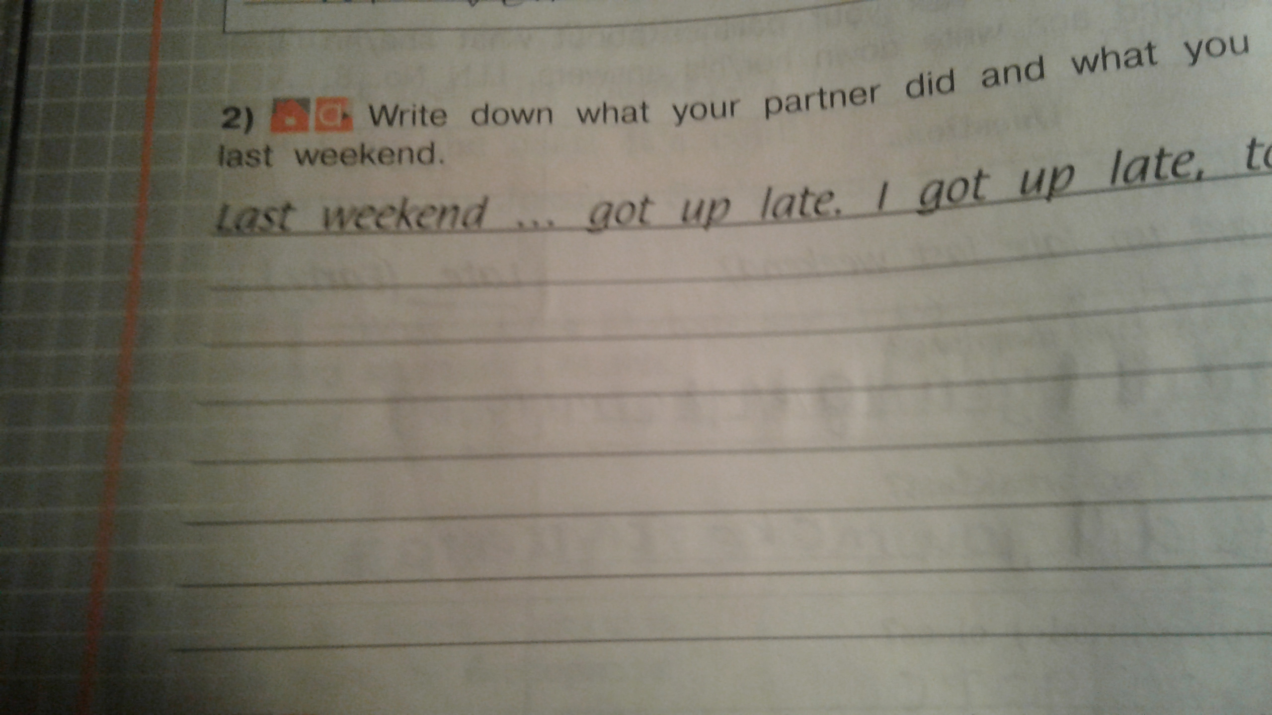 вам надо написать, что вы и ваш друг делали на прошлый выходной