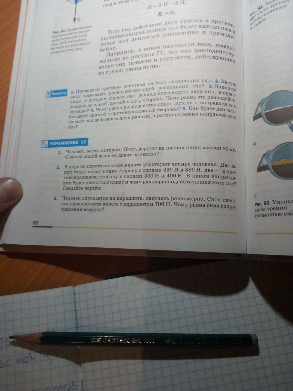 человек масса которого 70 кг держит на плечах ящик массой 20 килограмм С какой силой человек давит на землю... а еще второе и третье