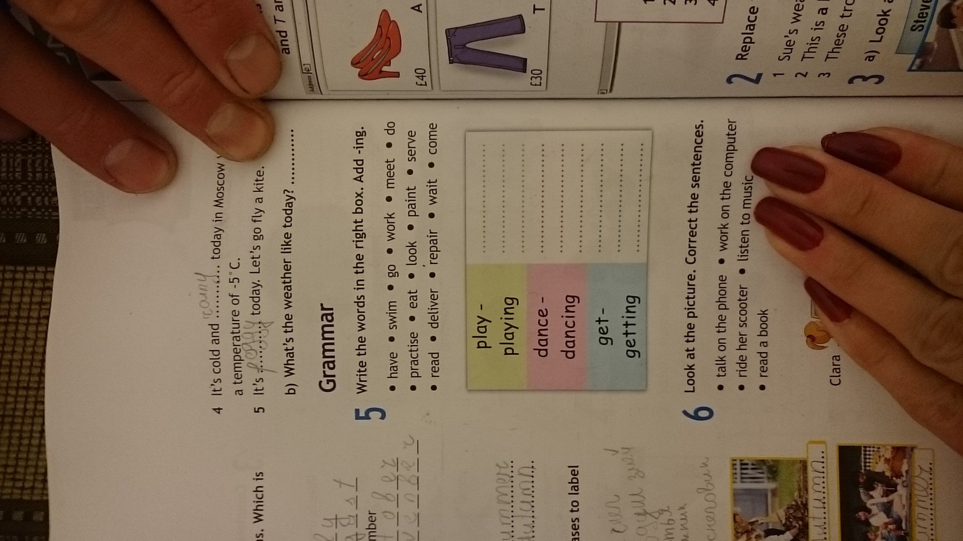 Правая колонка. Пишешь слова и добавляешь к ним окончания -ing. К примеру: Have-having (если не хватит места просто having). swim-swimming go-going work-working meet-meeting do-doing practise-practising eat-eating look-looking paint-painting serve-serving read-reading deliver-delivering repair-repairing wait-waiting come-coming