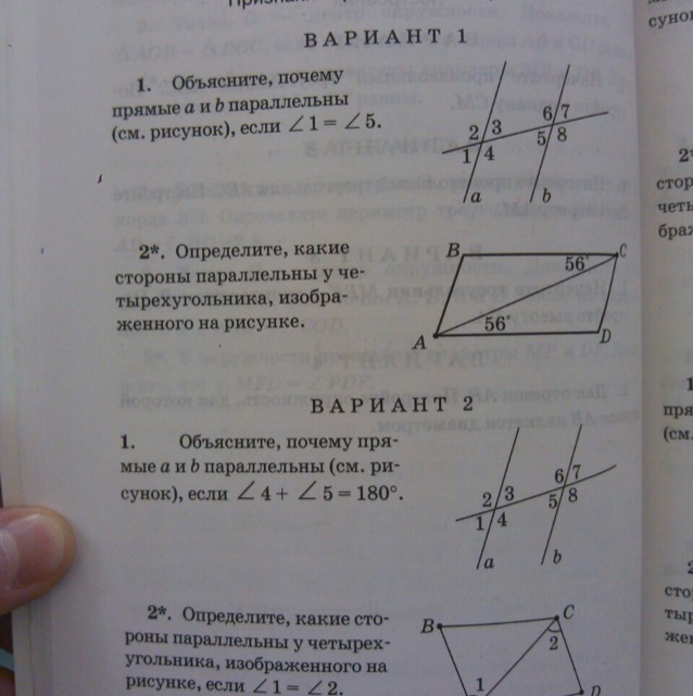 Если при пересечении двух прямых секущей, соответственные углы равны, то прямые параллельны.