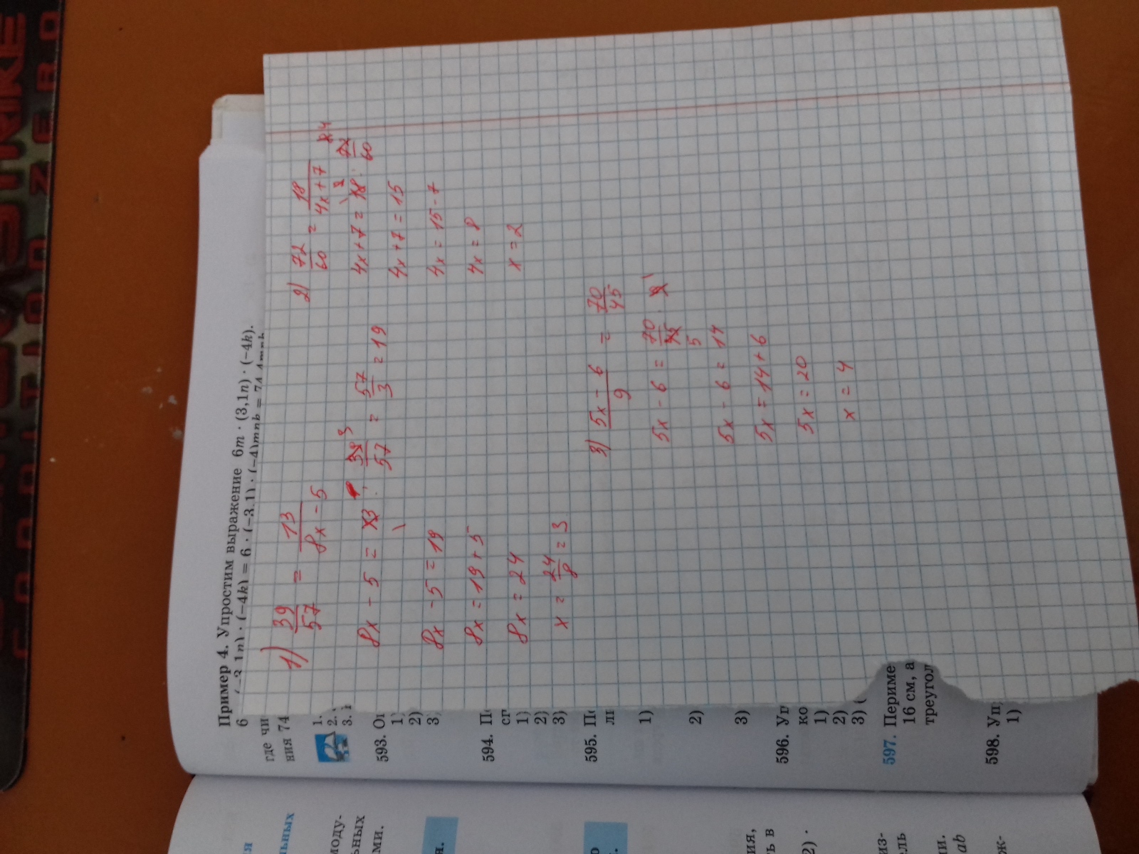 используйте основные свойства дроби найдите значение x 39/57=13/8x-5, 72/60=18/4x+7, 5x-6/9=70/45
